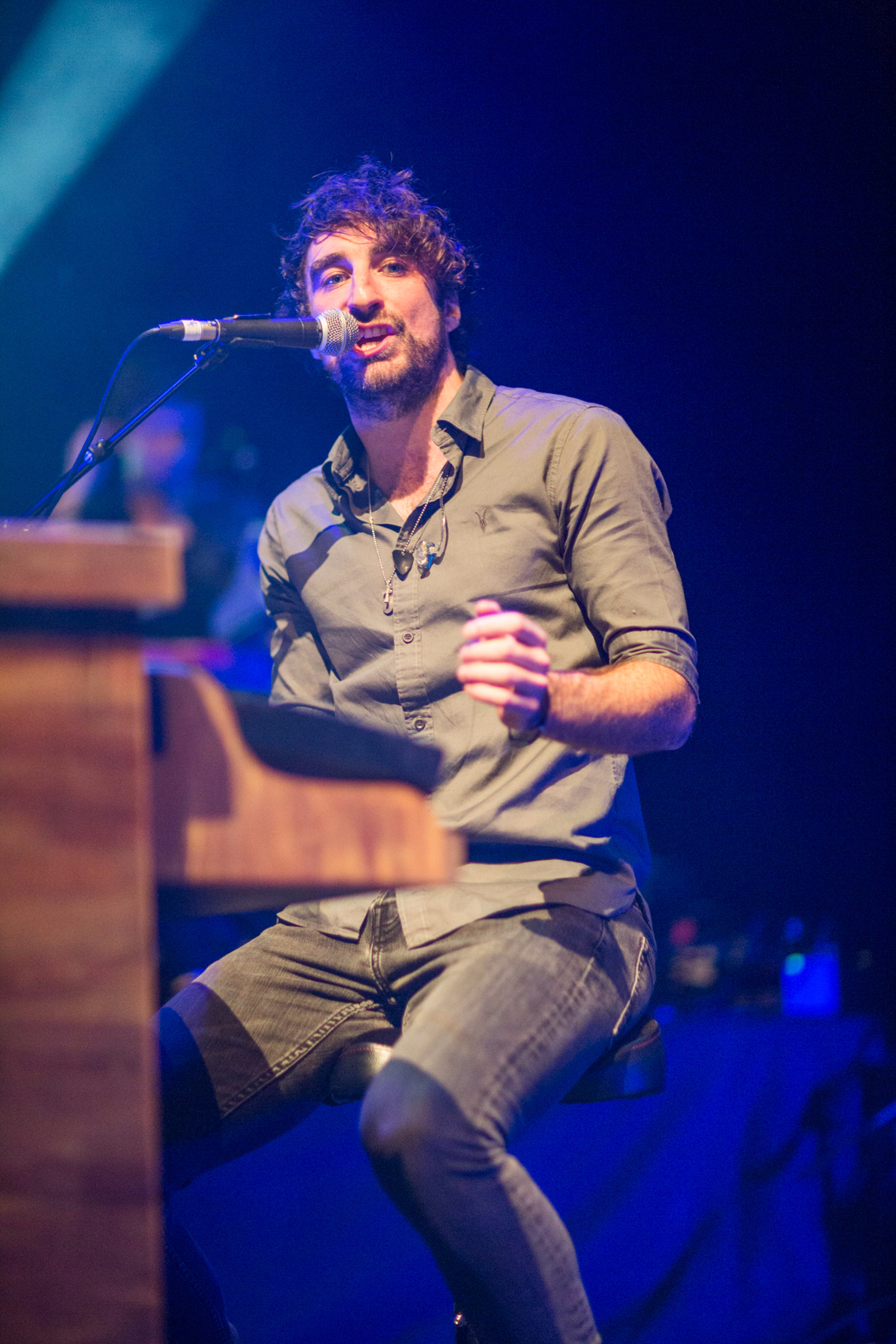 The band enter the stage with a frat-boy-like enthusiasm. They’re clean cut, pretty, have biceps and well-groomed facial hair. A crack of the snare and the auditorium is filled with whistling guitars as clean in tone as they are in appearance. Lyrics about being here and being now and being able to have it if we want it enough, and do it because we’re worth it, spread placid smiles on the faces of the cider drinkers by the bar.