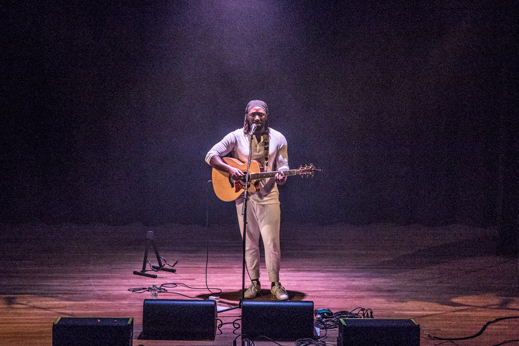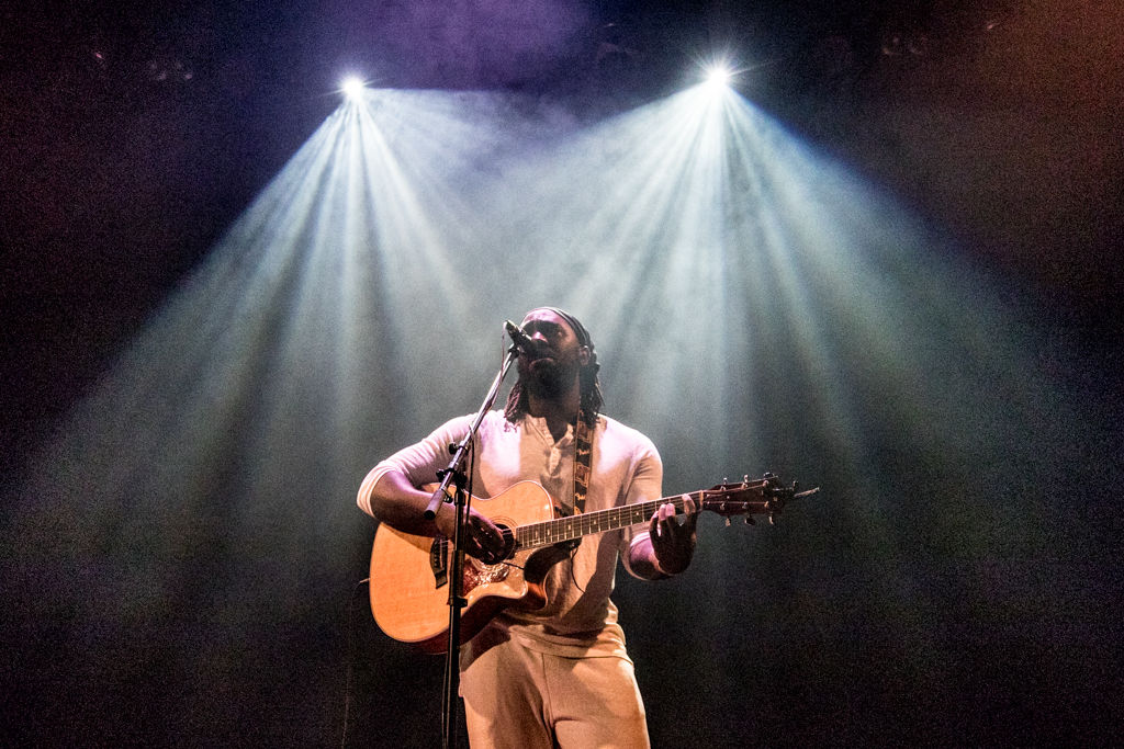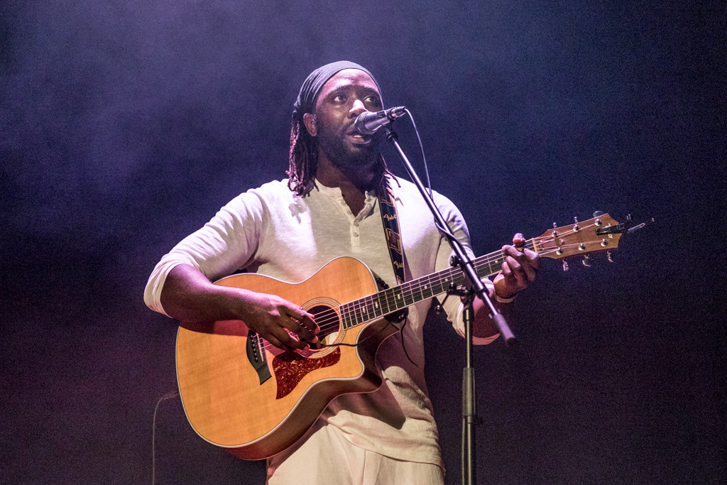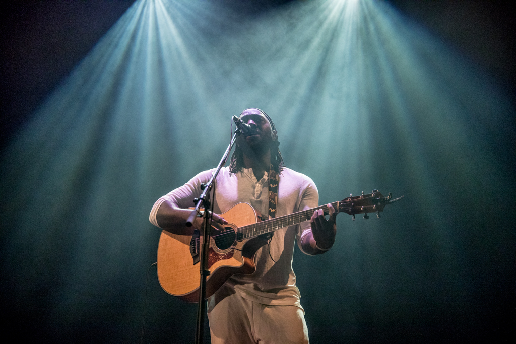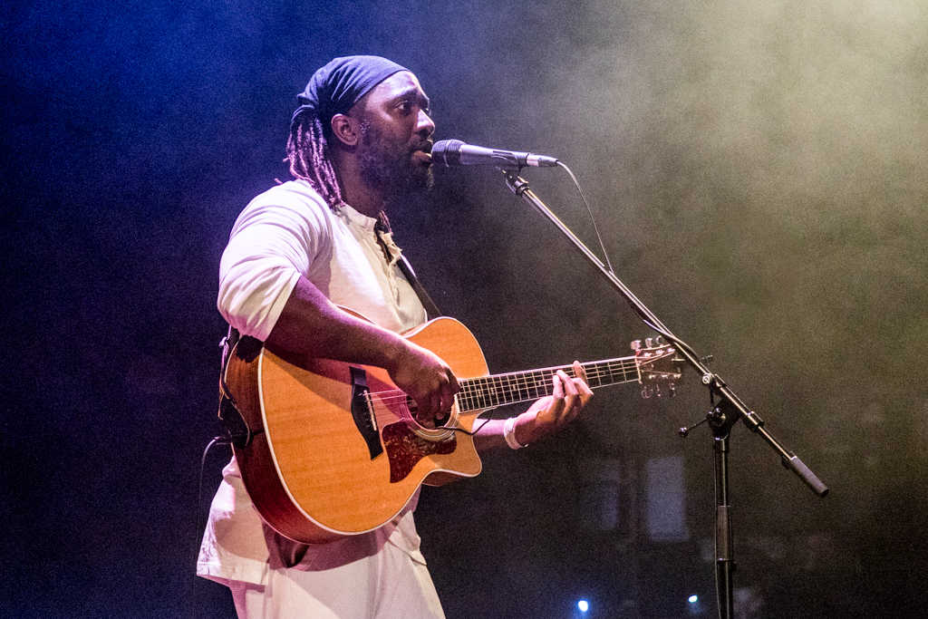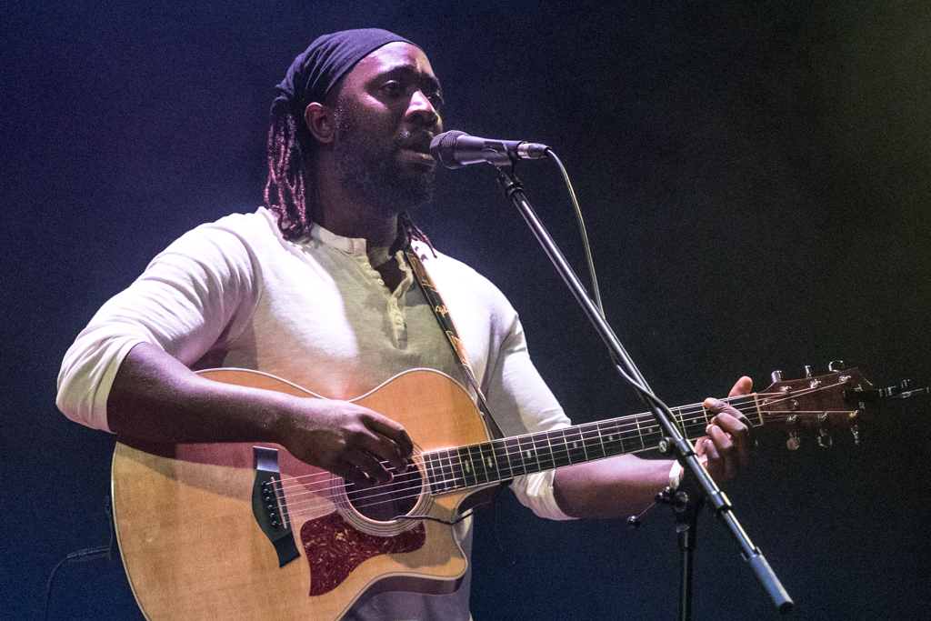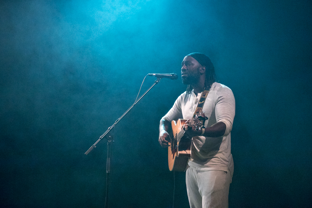 Standing in the middle of a bare stage, acoustic guitar in hand, Okereke started with some of his brand new songs from the album Fatherland. Among them You Keep on Whispering His Name and Do You Right seemed to speak directly from experience, and reflected the vulnerability of the individual approaching a relationship.