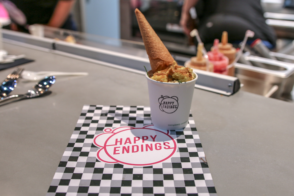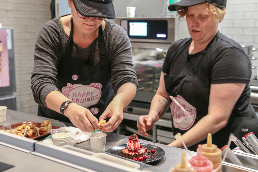 We tried, however, Happy Endings, one of the winners at the 2017 Young British Foodie awards. Terri Mercieca has already gathered a cult following for her creative range of ice cream sandwiches and desserts (Naughty One, a salted caramel and miso parfait between fine layers of chocolate Guinness cake, is particularly popular). Of the various desserts we had, the chocolate fondant was clearly the most luscious.