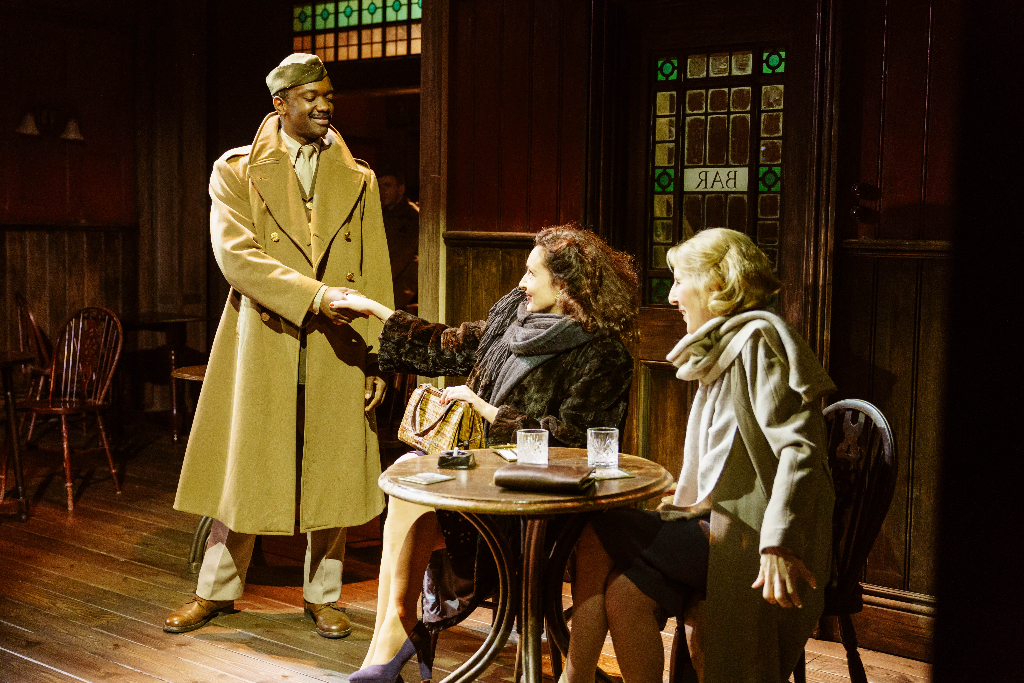 Women’s roles in society have changed over the years, through the ups and downs in their duties and their rights. During wartime they represented the backbone of the community, covering men’s absences in the workplace, in the family and in the pubs. These last places are featured just a couple of times in The Slaves of Solitude, now at Hampstead Theatre, but their inebriating products and, in general, the accessibility of alcohol are extensive throughout the play. And it doesn’t create scandal when women are also regular clients or when the ladies mingle with handsome African American soldiers.