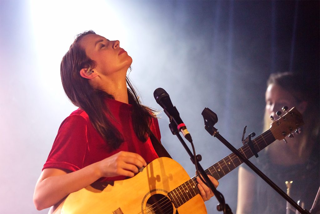 After a minor technical hiccup, moody red lighting soon revealed the opening song. Album track Myriad set the scene with a keyboard, melancholic undertone, and vocoder for vocal distortion, which made frequent appearances throughout the night and enforced Gordi’s signature hybrid sound. The artist explored an array of sounds to further show this off, from her digitised harmonies in Wanting alongside her acoustic guitar, to the looped vocals of Heaven I Know, which began with the hypnotic, repeated whispers of “one, two, three” and steadily built up. One could observe the concentration and attention to detail that Gordi puts into the production of her performances.