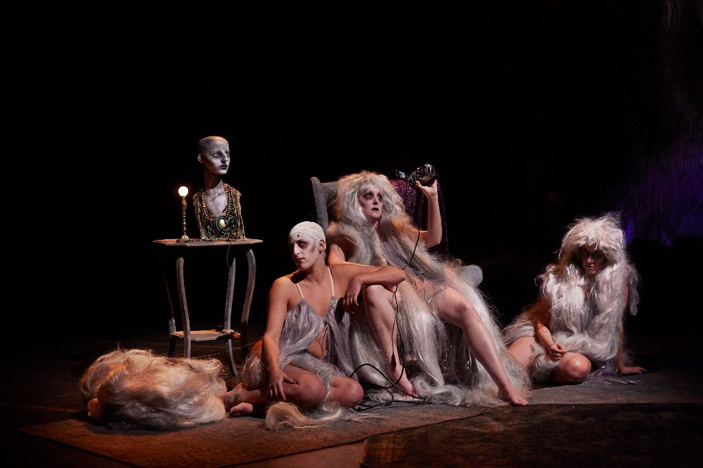 One of the first things theatregoers notice as they take their seats is the interesting choice of curtain. Thick, grey and made entirely of ragged wig hair, viewers will soon come to realise two things. The first being that this odd drapery is actually the thing about the play that makes the most sense. The second being that the staging is the least of their worries.