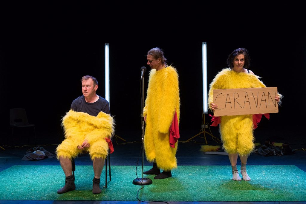 Three performers are on stage in an uncomfortable, looping game show. It’s all very dark, though to talk in any detail about what actually goes on would be to ruin it for anyone who hasn’t seen it – but the butt of the joke is definitely the audience. The repetitive nature of the show, the laughing tracks and intentional overacting leave theatregoers exhausted and confused at times. There are scattered laughs throughout, some of the spectators pleased to be in on the joke, some moments are genuinely funny. It’s the typical mixed bag of responses earned during performance art. For long stretches, the reaction of the audience is silence, they are quietened by strangeness.
