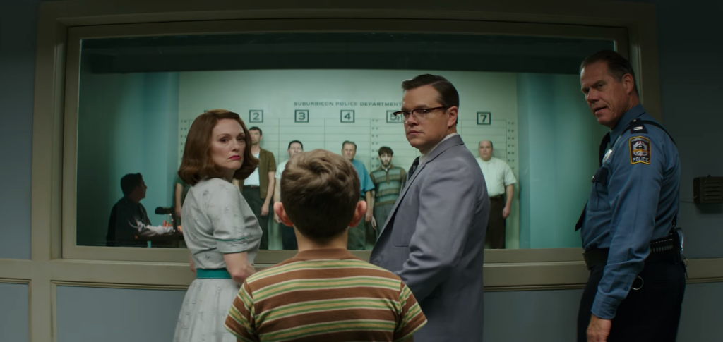 Gardner Lodge is the typical 1950s family man, though an evil lurks within his personality, while Julianne Moore plays sisters Margaret and Rose. Suspicions begin to rise as insurance claims are made soon after Rose’s death, particularly by chief investigator Bud Cooper (briefly but thrillingly played by Oscar Isaac). Moore and Damon depict their roles of creepy suburbanites well, but the film lacks the quality that would make it an excellent one, as it fails to offer anything new, but is a rehash of dark fraud comedies that have come and gone in previous years. Although the intricate production detail and theatrical score by Alexandre Desplat contribute to creating an atmosphere of heightened drama and emotion in the viewer, Suburbicon does not offer much else in terms of originality.