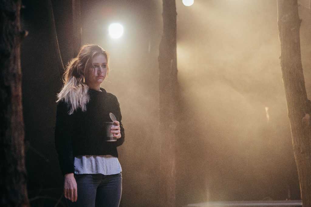 After her superlative, hyper-naturalistic work on Victory Condition, Vicky Featherstone goes in the other direction here, complimenting Vorozhbit’s stylistic shifts with a series of sharp choices. Set in Camilla Clarke’s gorgeous debris-strewn forest, the opening scene is a monologue of sorts, a journalist’s bittersweet account of her romance with a solider as she travels to the frontline, peppered with the stories of those she meets on the way. Featherstone injects a further sense of documentary by having these alternately comic and crushing anecdotes spoken into a microphone at the back of the stage, as if played from a tape recording made out in the field. This provides the production with its best method for exploring “how crass it is to talk about love in war”, puncturing the journalist’s wistful tone with the quotidian horrors of conflict.