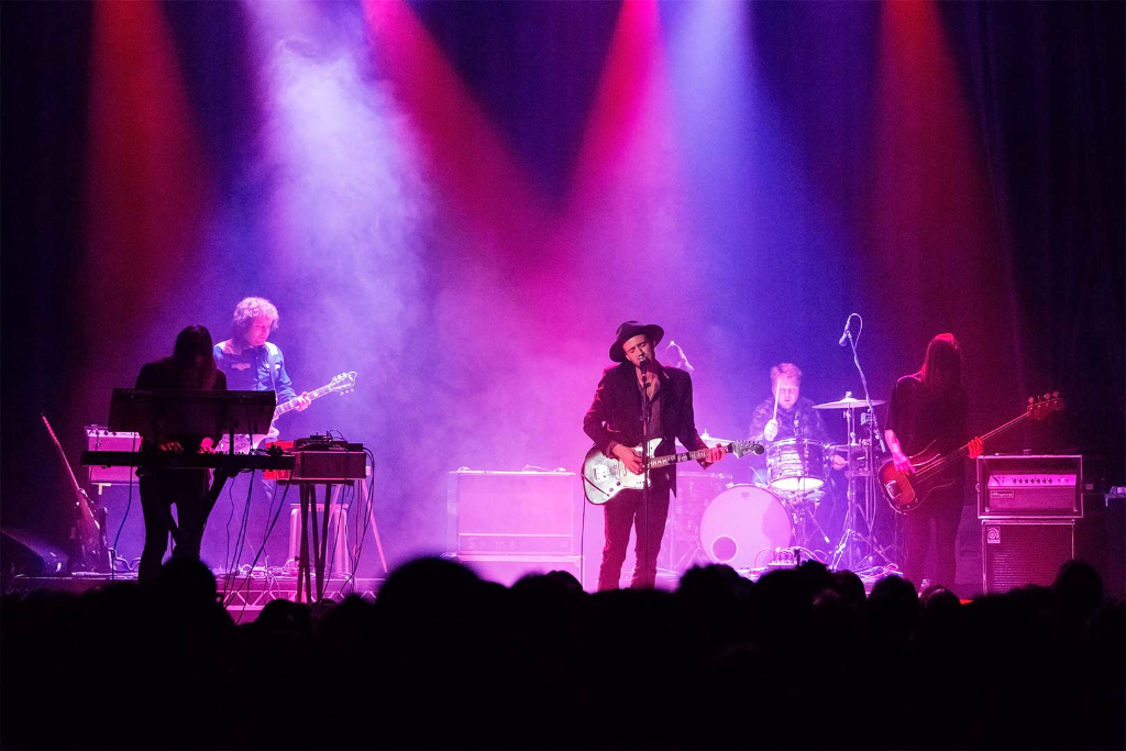 London based five-piece The Veils are quite an underrated band, as they go. Emerging on stage through the dark lights at the beautiful Islington Assembly Hall, the group are quick to assemble themselves, while lead singer Finn Andrews thanks the crowd, showing his gratitude early on.