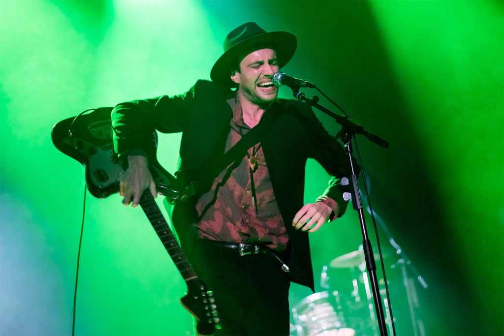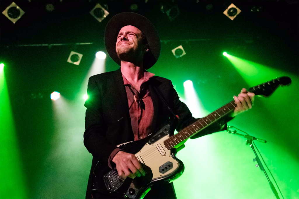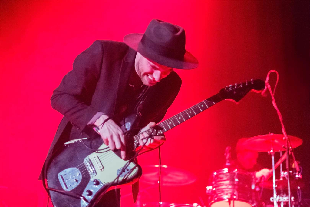 Though seemingly shy and reserved at times, there is an unmistakable rock’n’roll demeanour to Andrews, who shakes his guitar strings with what is referred to as a bottleneck, the attitude matching the music. Axolotl is a hard-edged track defined by the frontman’s rough vocals, wailing and emotional, half talking in slow rap style, but reverting to singing. With Do Your Bones Glow At Night? they take a calmer approach, the steady guitar strumming and drum beats producing a softer melody, with the addition of gentle pre-recorded female vocals. Yet it’s clear the musicians can’t resist the harder Americana, the powerful clash of instruments culminating in a finale of angst. Hit single Low Lays the Devil is another example of Andrews’s preoccupation with religious undertones, of which he traverses through his lyrics. Pop-like in its nature, the composition is milder, producing a calmer approach to the alternative rock sound.