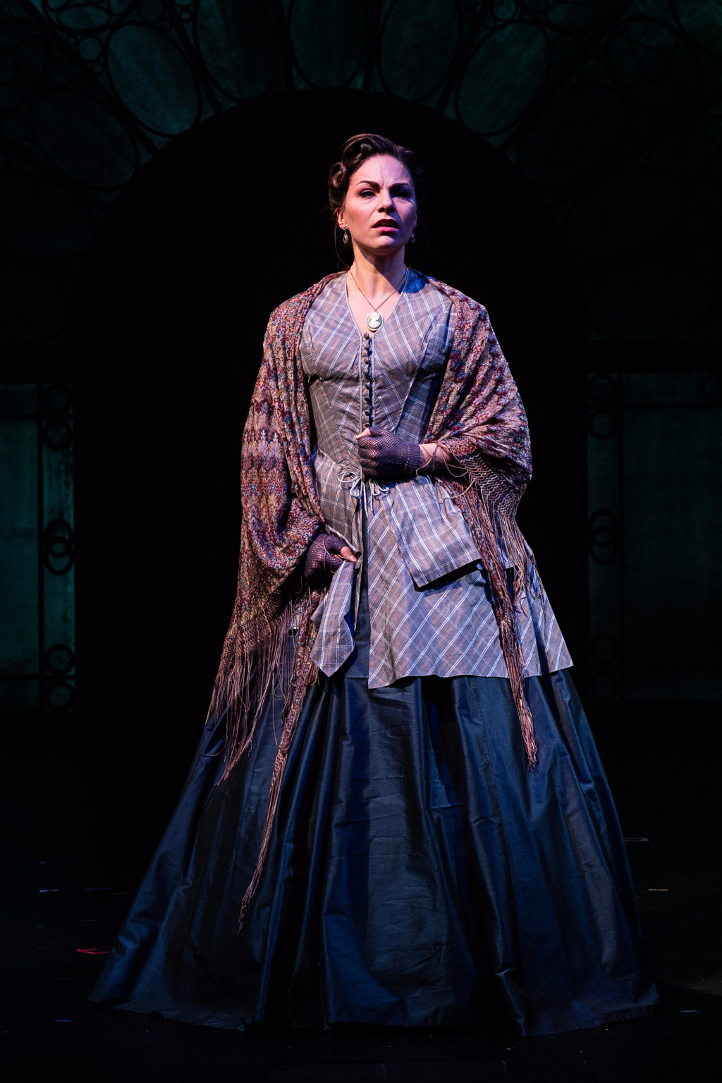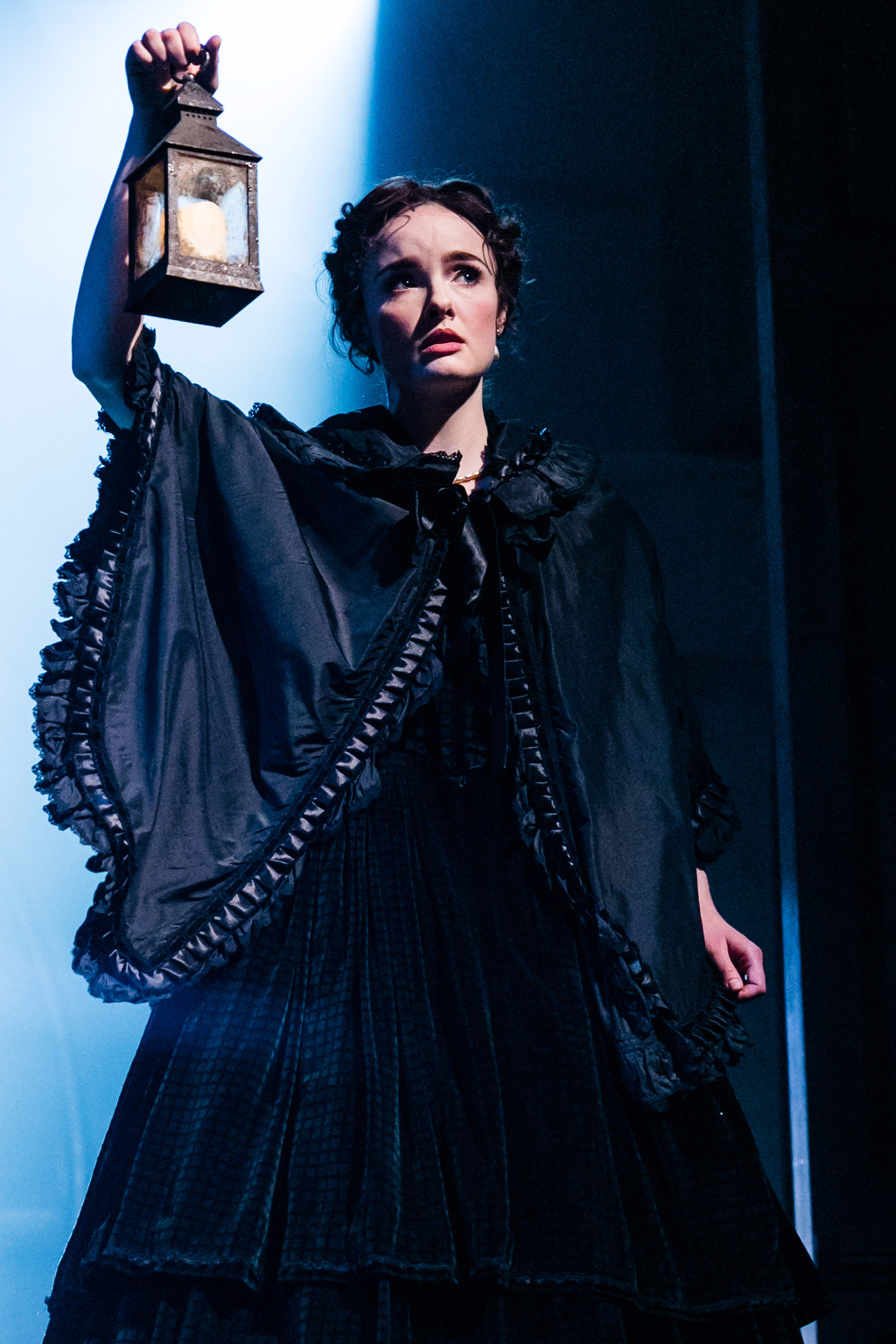 The set revolves around sliding doors, opening up to the lives of half-sisters Marian and Laura, but also cleverly portraying the mystery of the Woman in White, Anne, as it allows her to suddenly appear and disappear in a cloud of smoke. Smoke, light and shadow play a large part in modestly creating an atmosphere of suspense and intrigue too.
