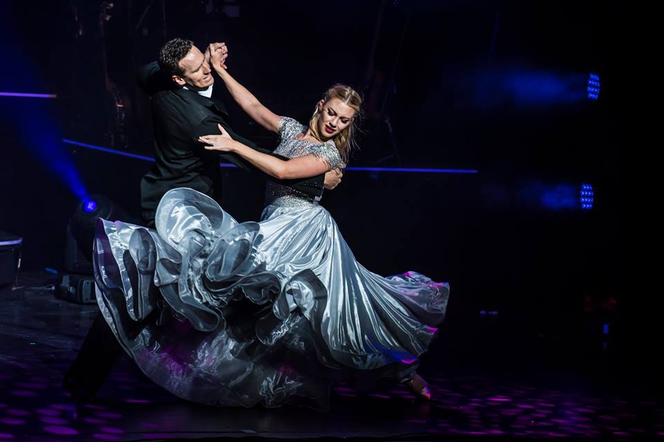 Following this, Sallyrose Beardall, a professional competitive dancer, puts on a sizzling hot routine. She moves provocatively, dressed in a red catsuit, doing splits and being lifted with ease by her male partners. The Viennese Waltz then transports us into a fairy-tale land, a beautiful number that evokes romance, perfectly suiting The Corrs’ hit single Runaway. With the mesmerising flouncy peach dresses, we are swept away in this exquisite ballroom piece, of which Cole himself remarks, “I love the ballroom…the reason I dance”. The super-fast speedy Charleston is done with ease, showing the performers’ talents. After some birthday greetings to audience members, our host presents the passionate and fiery Paso Doble. Despite the female dancers’ outfits being quite an eyesore, Cole’s is fitting – a black and gold matador jacket.