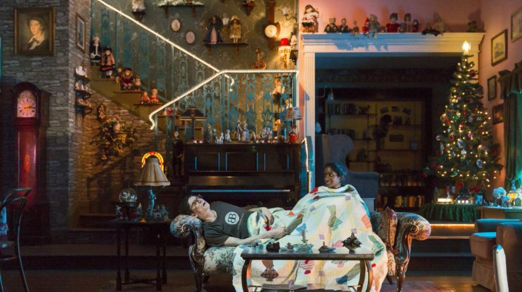 Yet, when used by Baker, these potentially grating elements coalesce to become epic, not only in length – John is a mighty three and a half hours – but ground covered. Like Chloe Lamford’s glorious set – which can be creepy or desperately sad or warm and welcoming dependent on the moment – the writer’s plays are filled with dense nooks and crannies for the audience to sit in for a while, without one topic ever completely dominating. It’s what makes her work so rich and rewarding: the sheer number of ideas rippling beneath the banal surface.