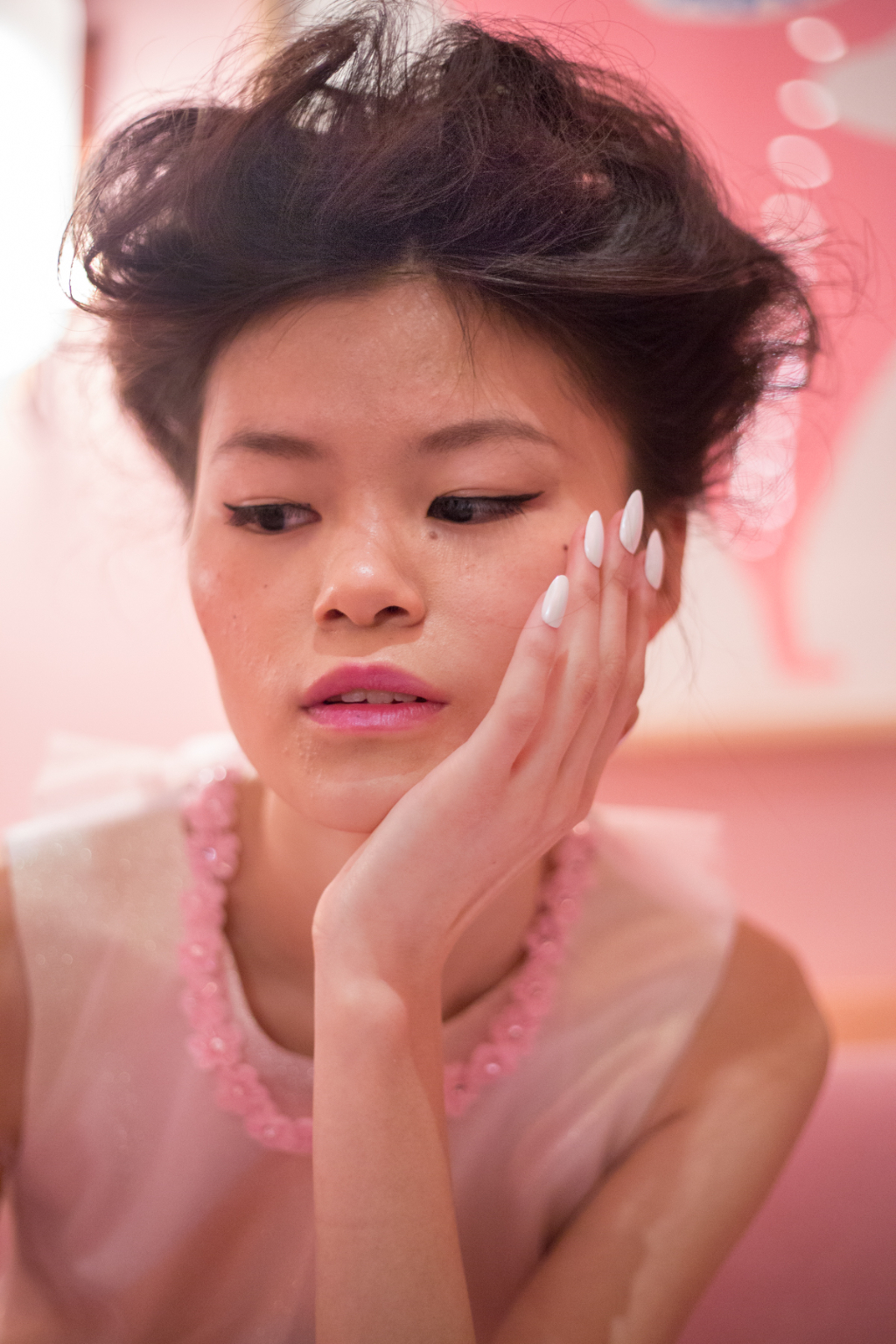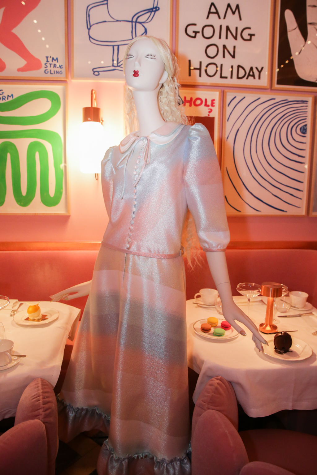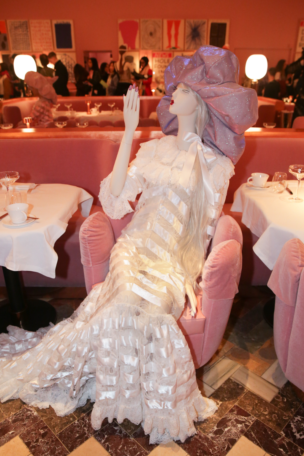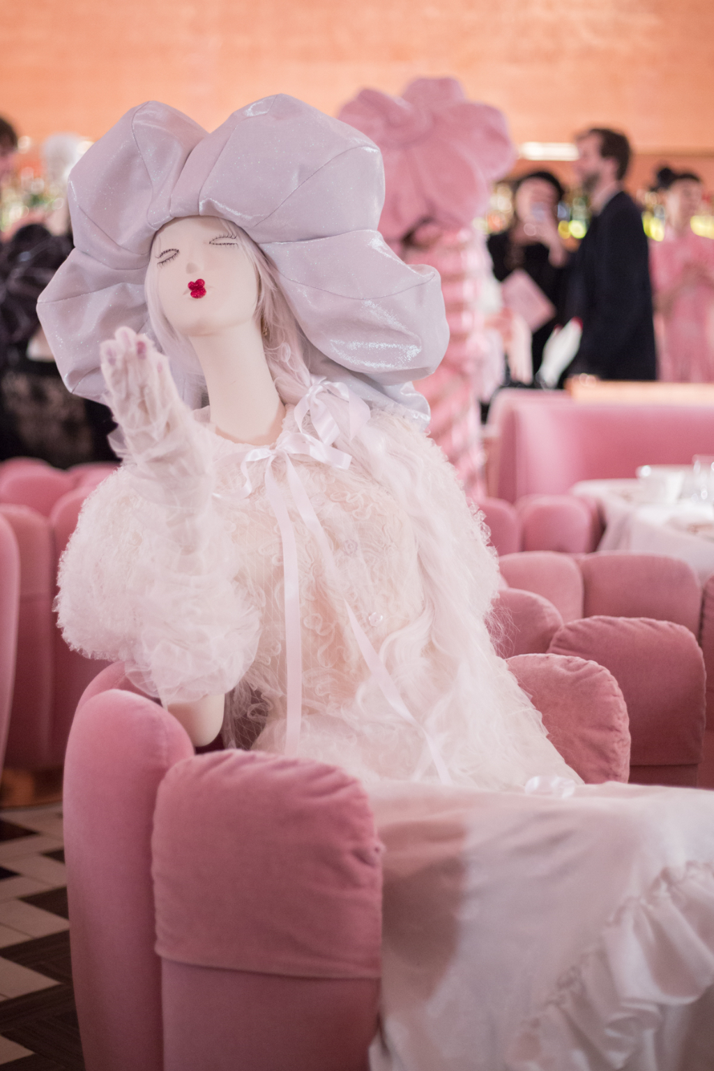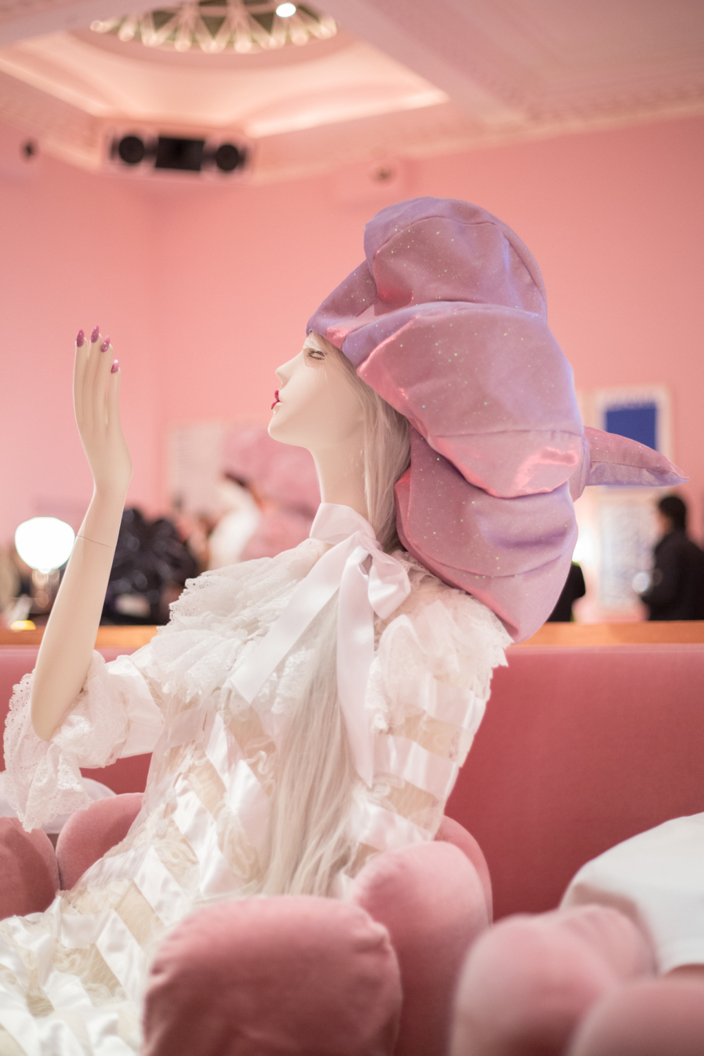 Aptly named I LOVE ME!, Ryan Lo’s return to presentation format marked a celebration of his work since he begun six years ago. Known for his sugar sweet designs, the presentation was held among the powder puff pink gallery restaurant at Sketch, creating the perfect background for Ryan Lo’s ladies who lunch.