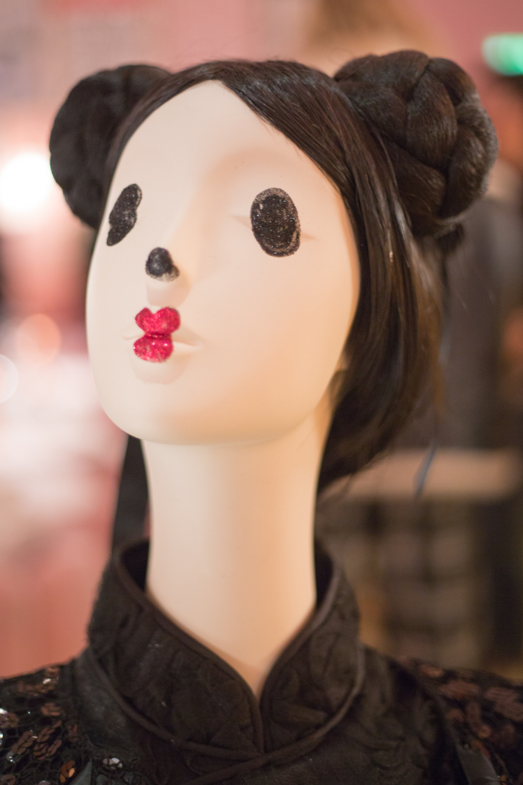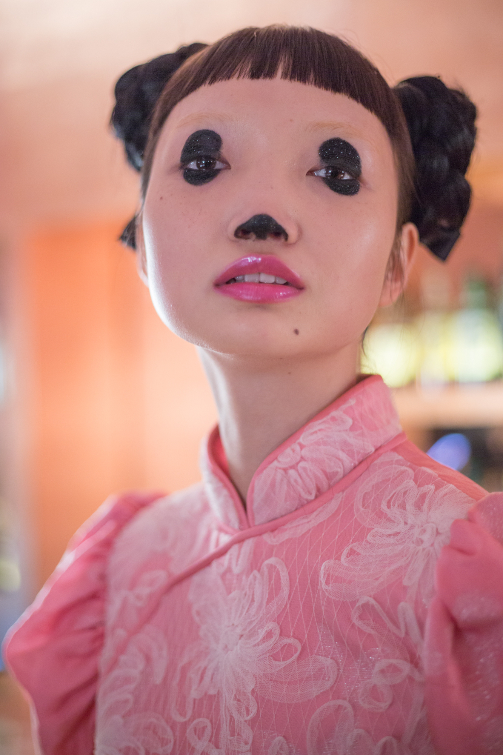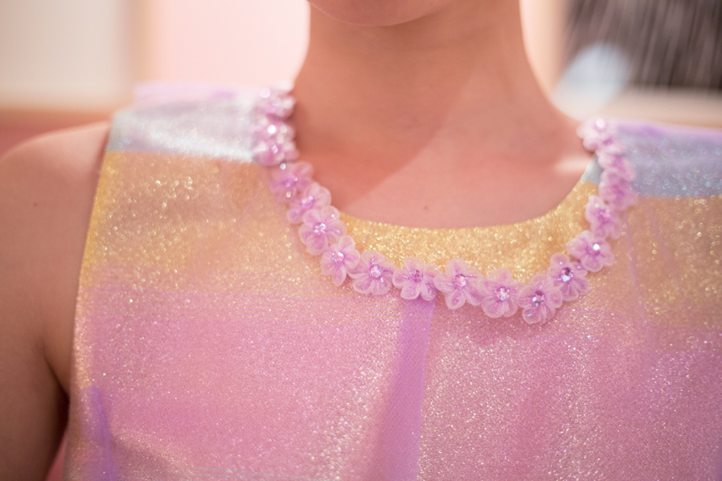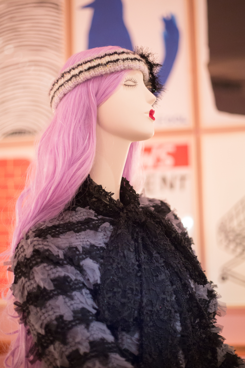 Sickly swirls of rainbow tulle transport you into Ryan Lo’s world where each model has eyes like a Manga character and glittered lips. Ruffled appliqué fabrics have been hand scrunched to sculpture patterns abnormal to their usual form, such as houndstooth and flowers.