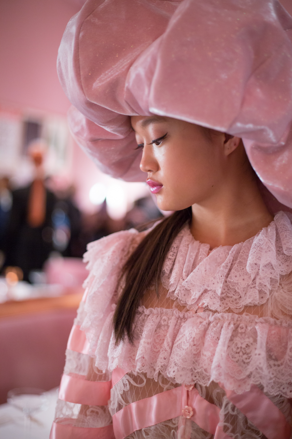 The collection is, as Lo says, “simply about what I love to do”. An abundance of nauseating pastels alongside Victoriana dresses are covered with puffs, ruffles and lace. Monochrome looks were splattered throughout, adding to the dark, playful romance that Lo does so well. Character is where Lo is in his element, whether that through bashful French maid outfits, balloon sleeved gowns or the Great Gatsby’s Daisy-inspired flapper dresses.