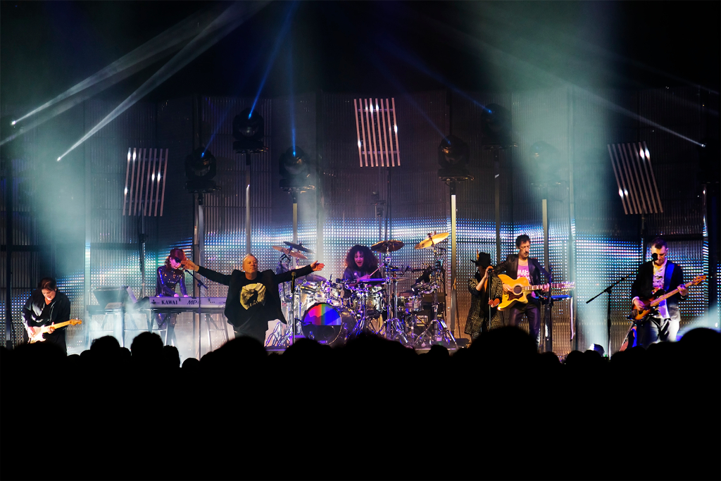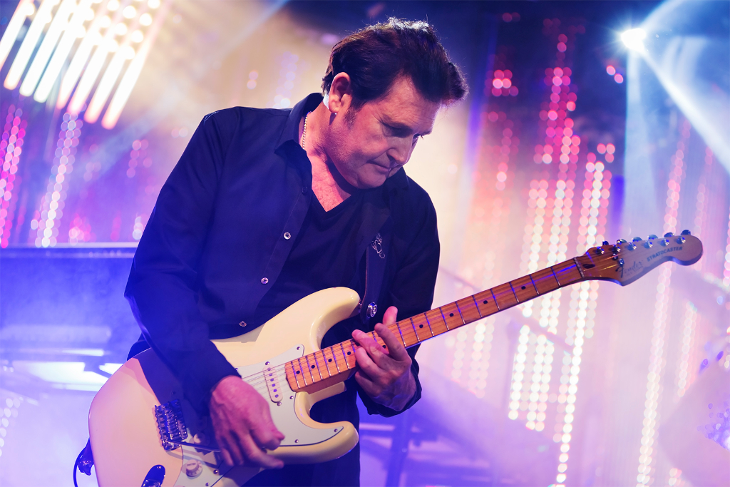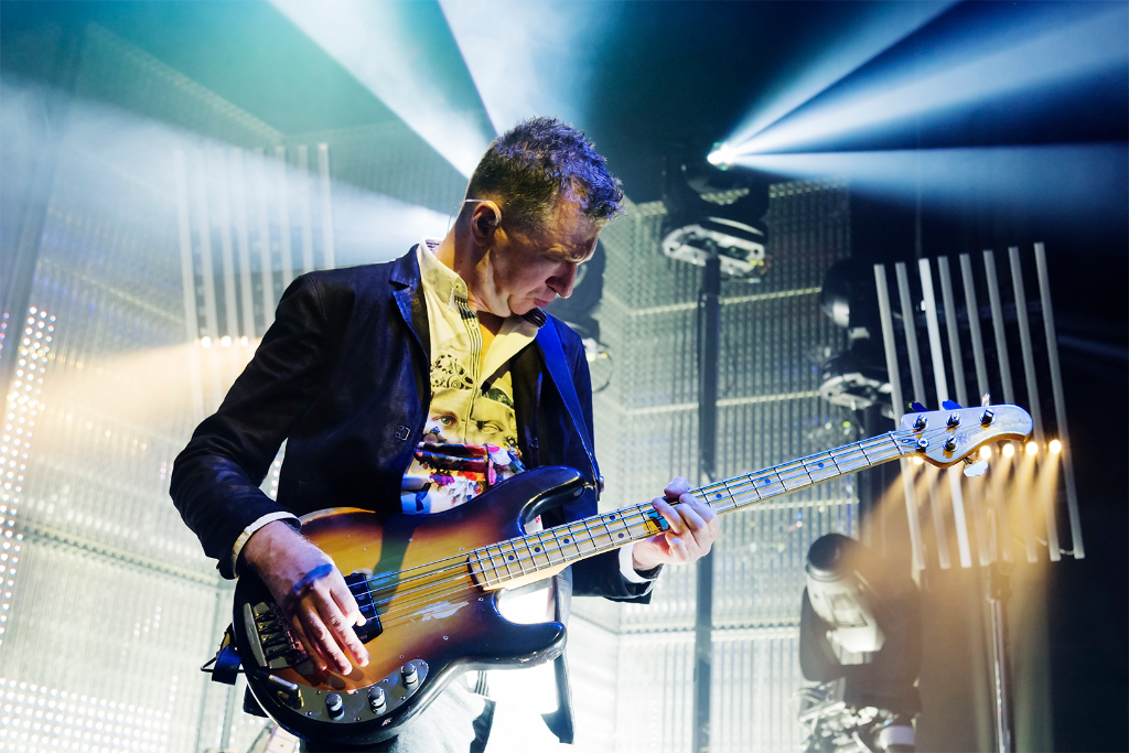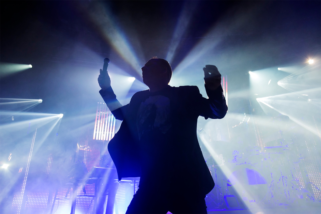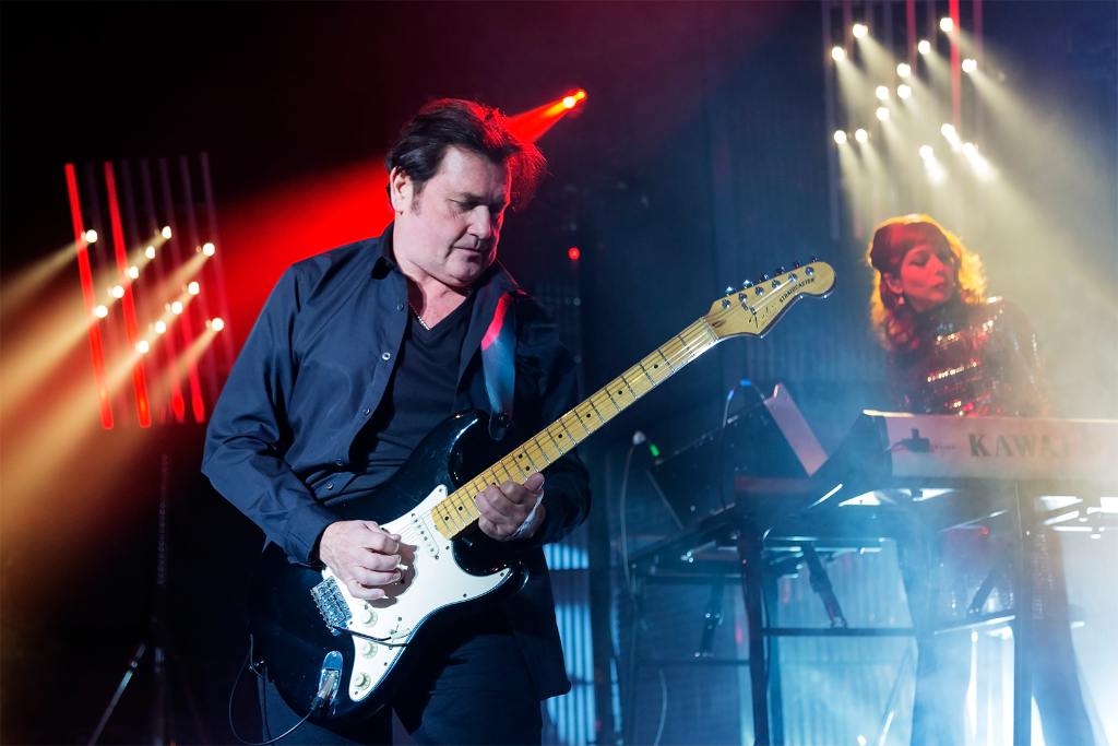 A band that has an expansive back catalogue, Simple Minds begin with I Travel, a single from their 1982 album Celebration. The track rings true to Donna Summe: an upbeat disco hit, parts pop fun, parts new wave. Despite singer Jim Kerr’s vocals being buried within the pounding percussion, the song is somewhat salvaged by the electrifying guitar and synthesiser. Celebrate, from 2013 The Greatest Hits, is a jumpy synth-backed number, with qualities of the post-punk era. The electric guitar – played superbly by original Simple Minds member Charlie Burchill – intensifies with the climax, the solos reminiscent of the group’s signature riffs. Red lighting and the powerhouse drumming by percussionist Cherisse Osei lend an energetic feel to the atmosphere. One of the highlights of the evening, the gorgeously understated This Earth That You Walk Upon, from the band’s fourth album, Sons and Fascination, becomes transformed by the talkbox, a device which, when breathed into, modifies the frequencies of an instrument. It is this particular sound that heralded the Scots to stardom: art rock, combined with an alternative twist.