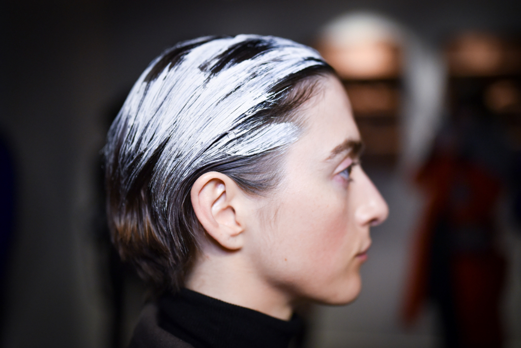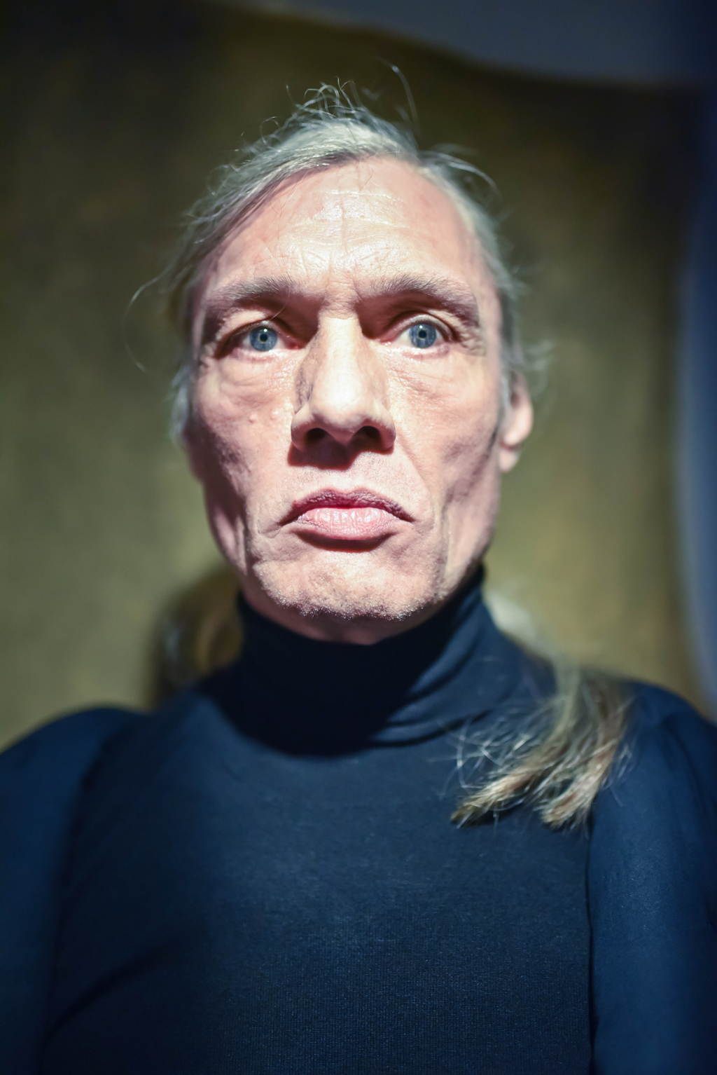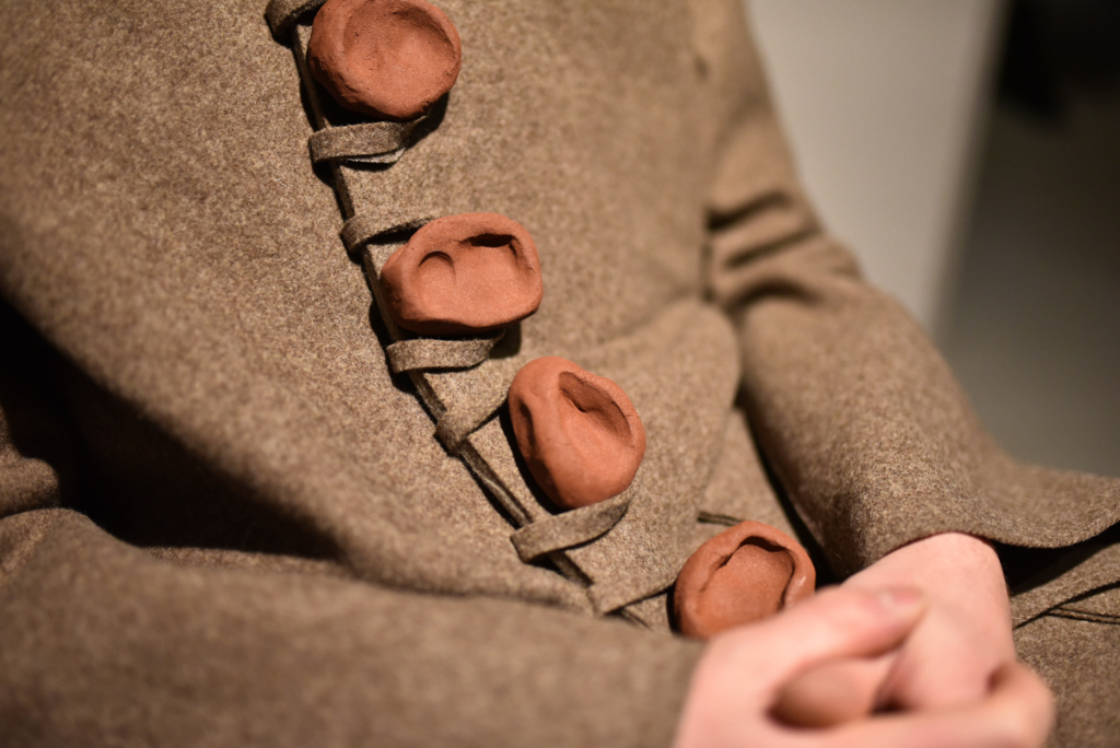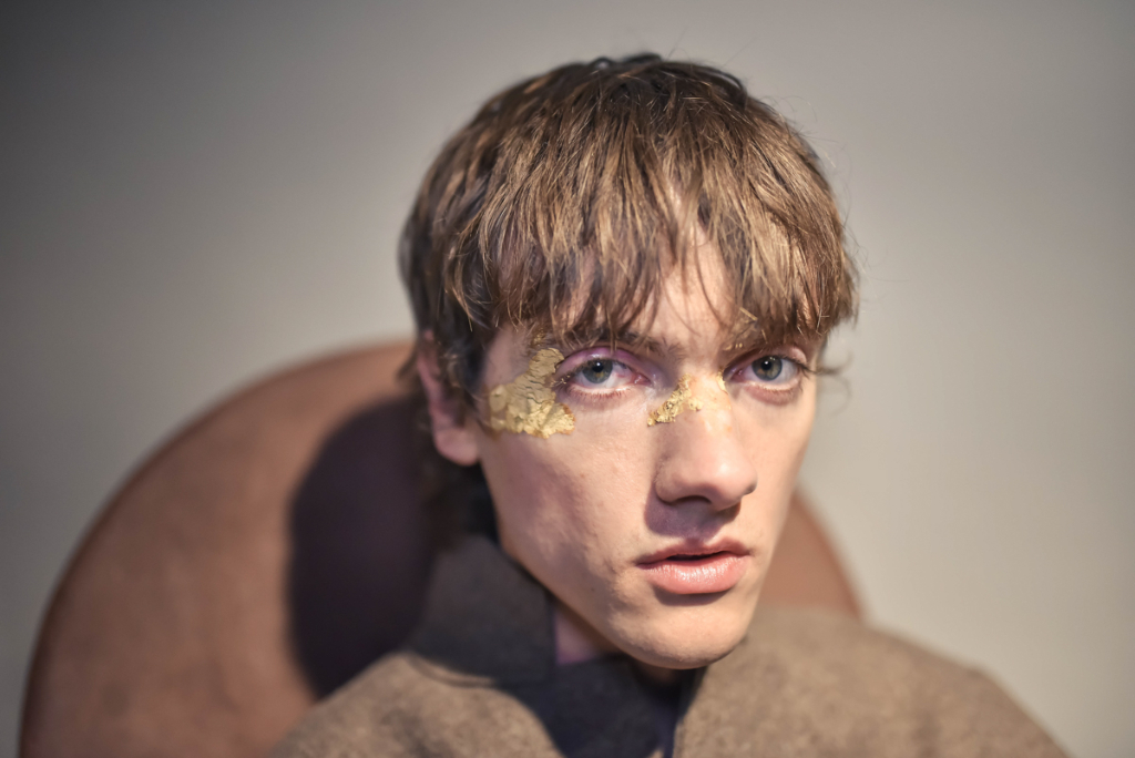 Clay has been brushed through hair and crusted onto the skin, illustrating that the clothing is part of nature, showing that the wearer of Toogood’s clothing is a work in progress.
