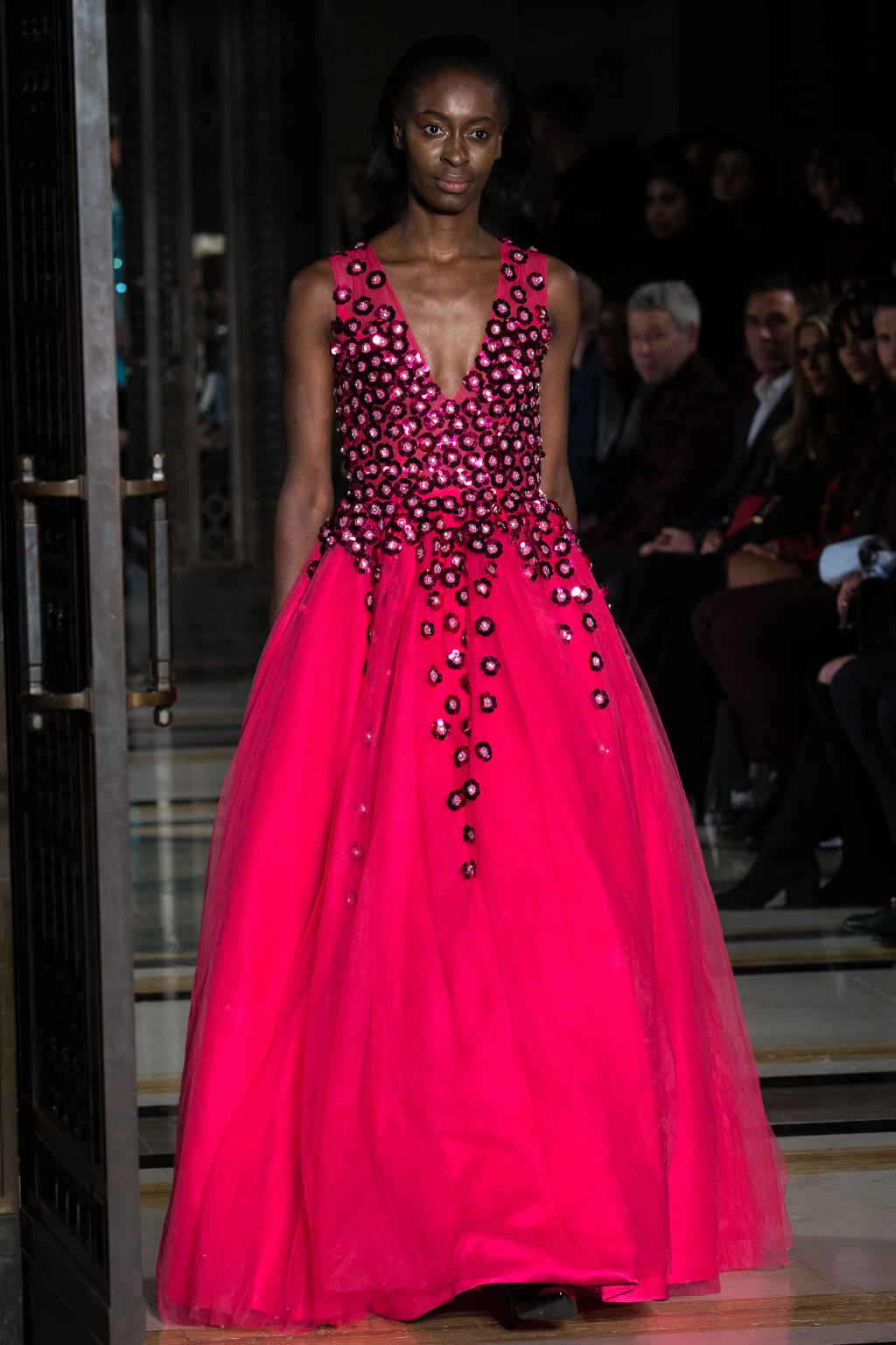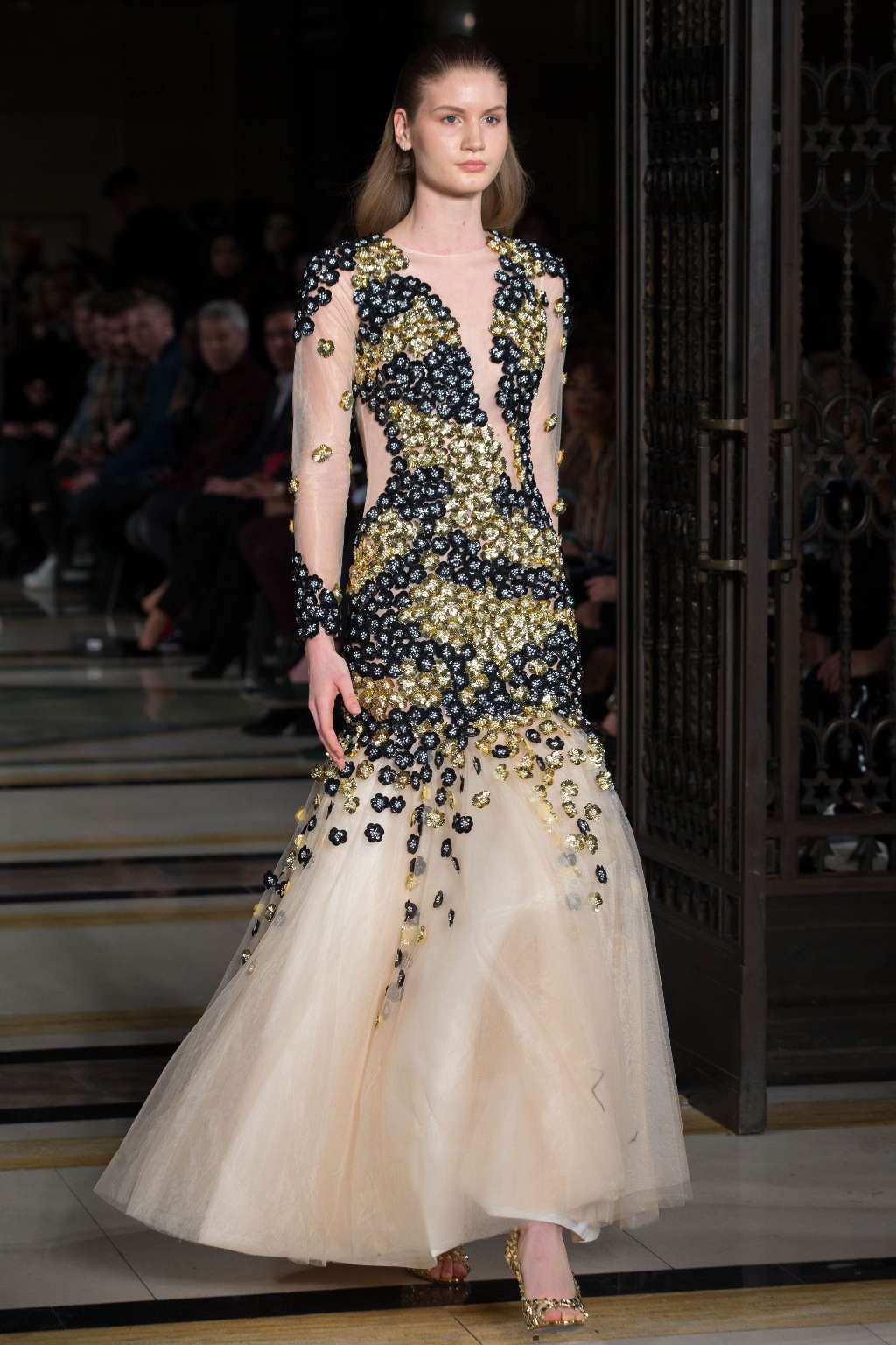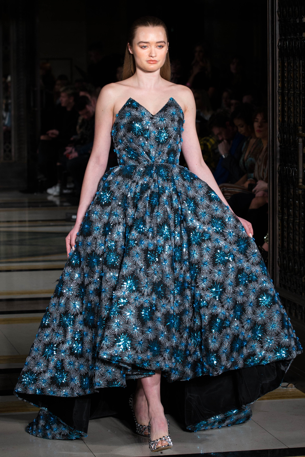 She eventually launched a collection in her name back in 2013, since which time her styling has evolved from alluring cocktail dresses that accentuated feminine curves to the more dramatic red carpet-ready gowns on display for the 2018 season.