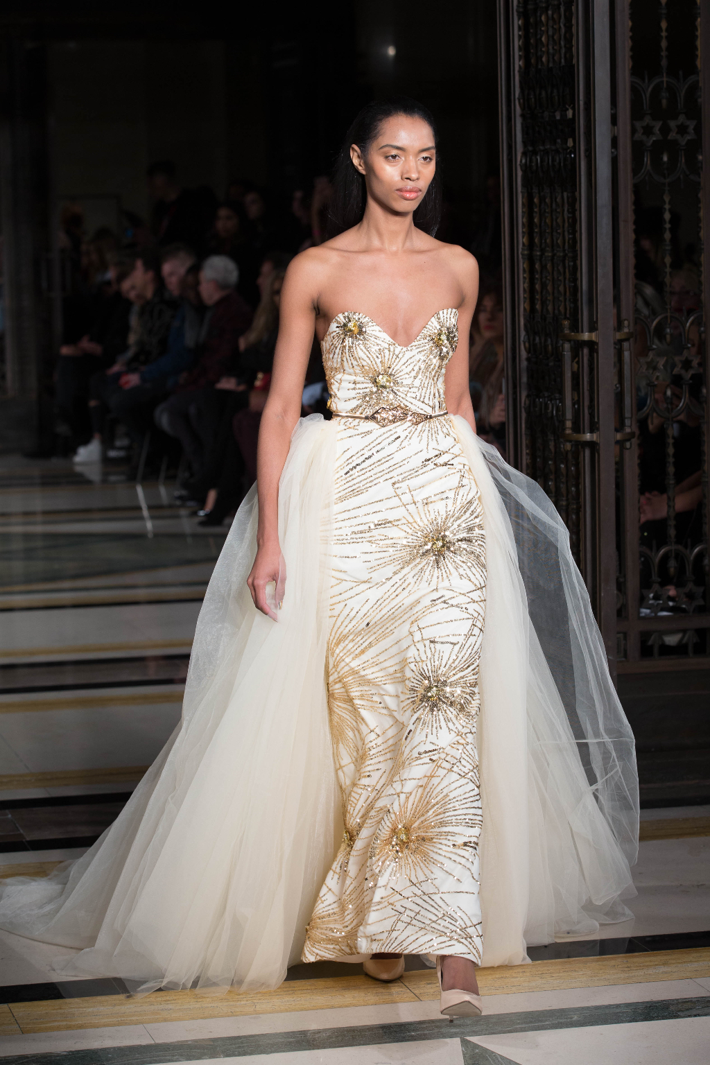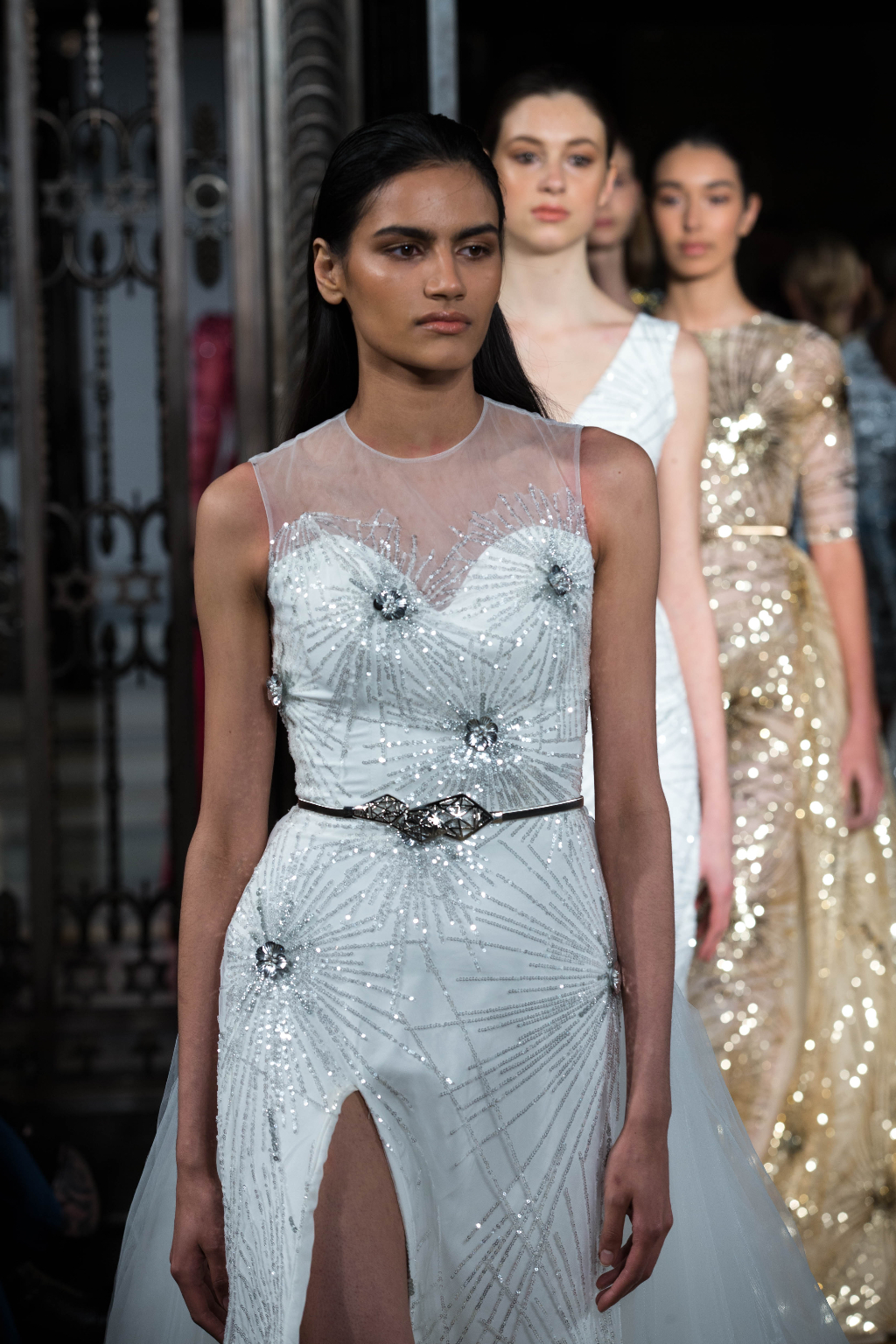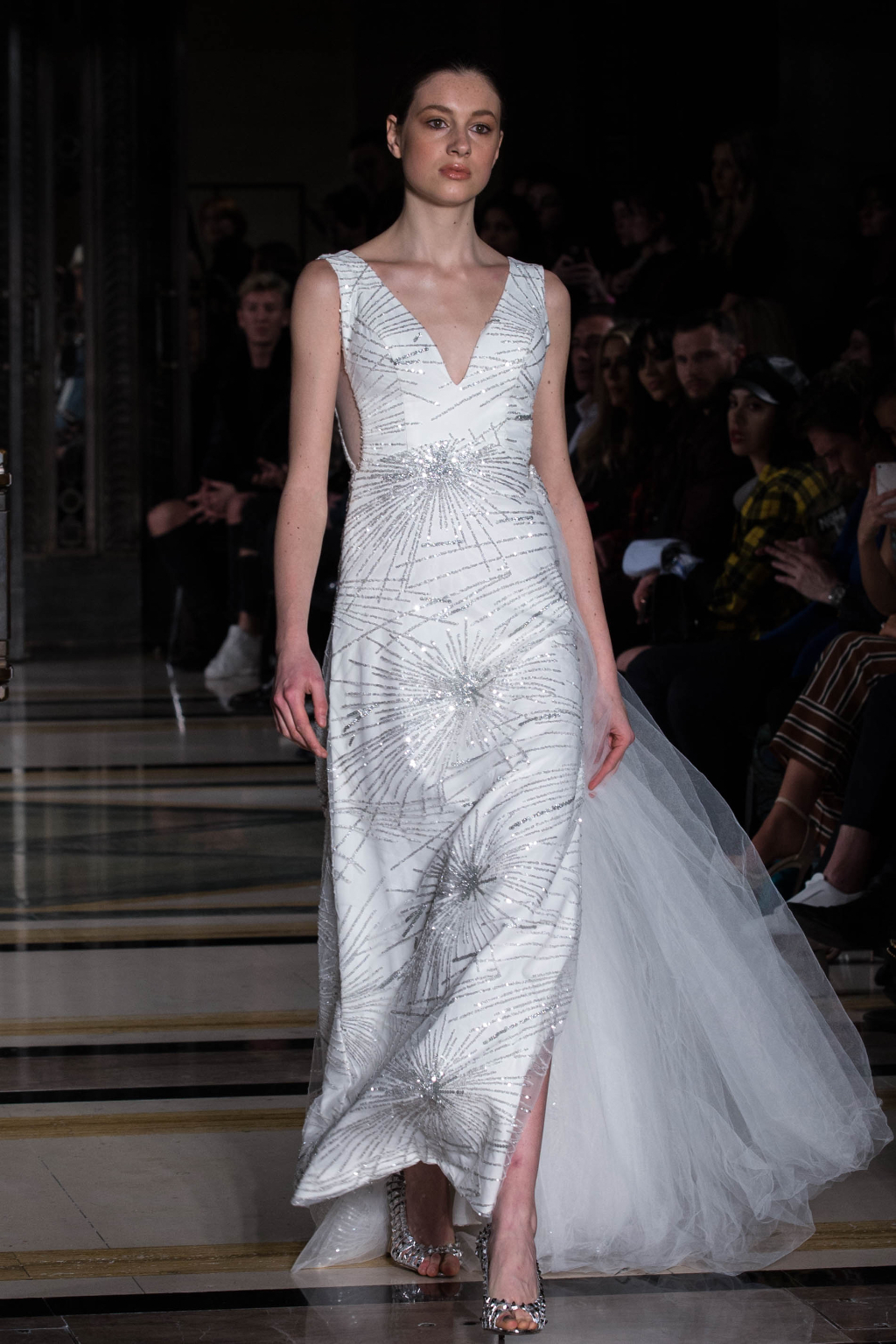 She eventually launched a collection in her name back in 2013, since which time her styling has evolved from alluring cocktail dresses that accentuated feminine curves to the more dramatic red carpet-ready gowns on display for the 2018 season.