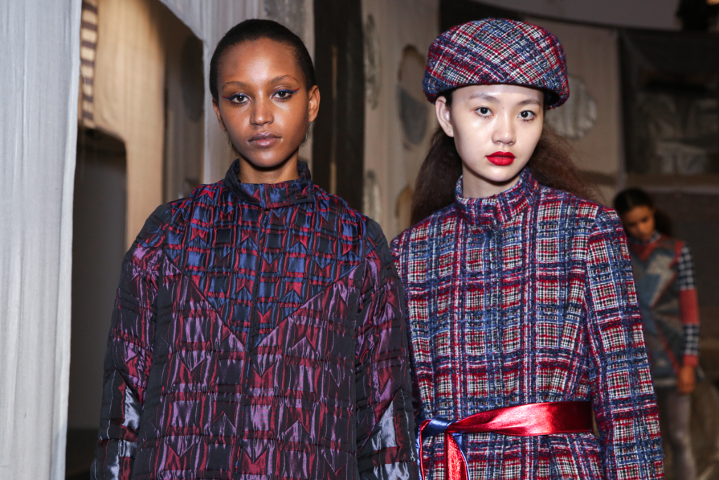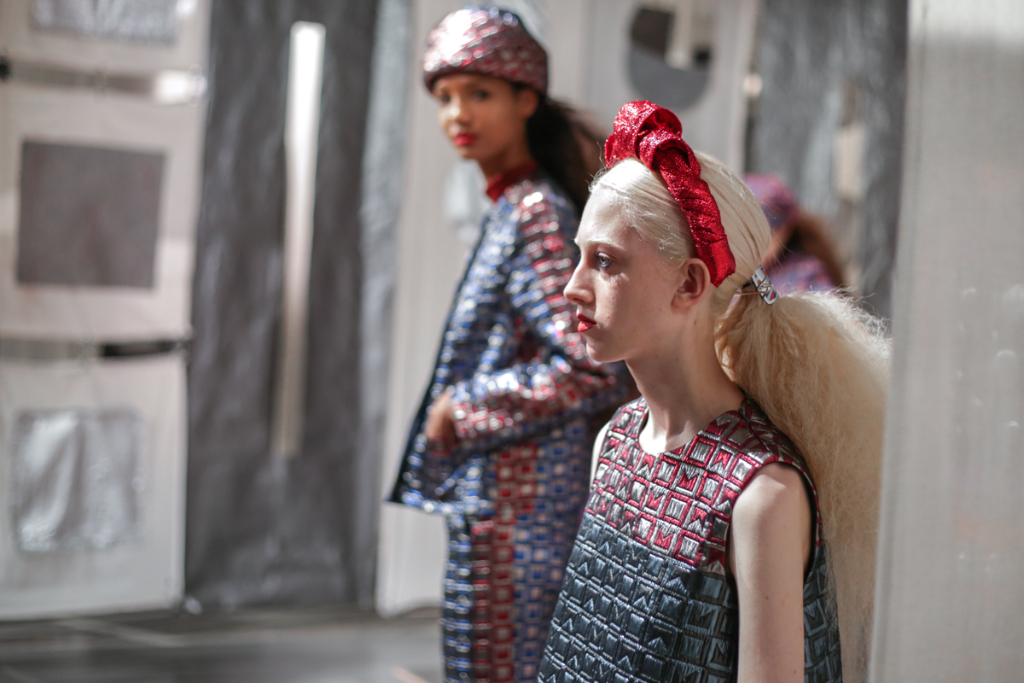 Although the girls appeared initially tomboyish, a certain femininity radiated from them; the lurex that meandered its way through the fabrics of individual pieces lent a constant glimmer to the wearer, creating a facet of youthfulness to the collection.