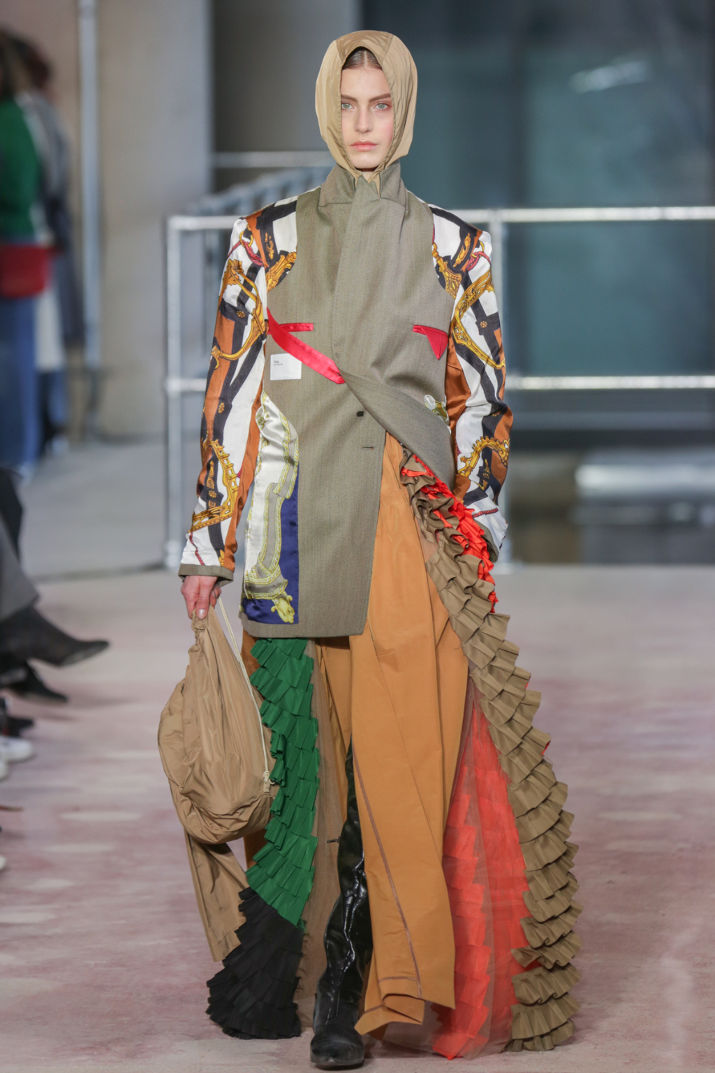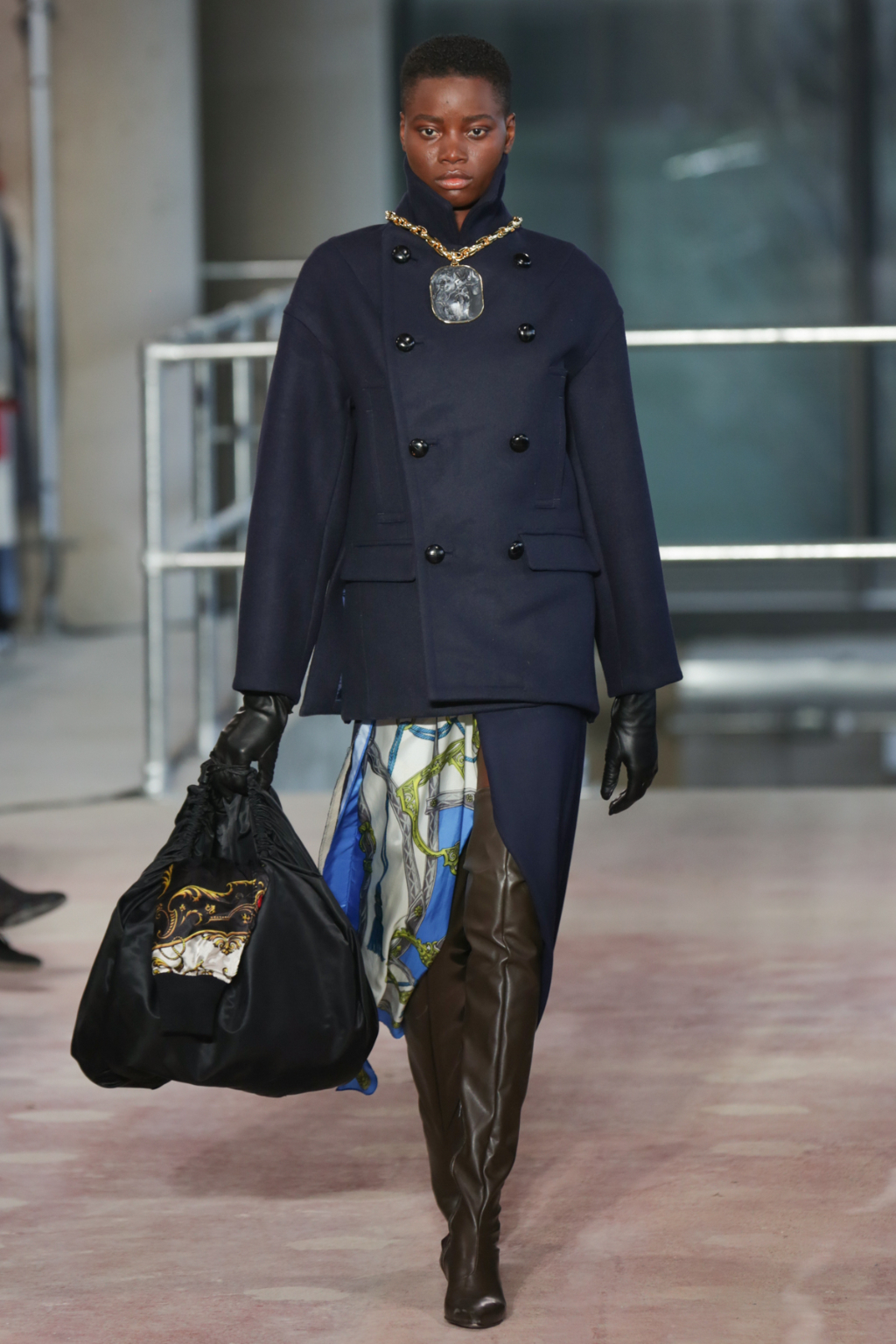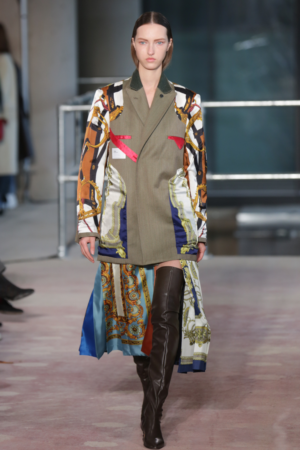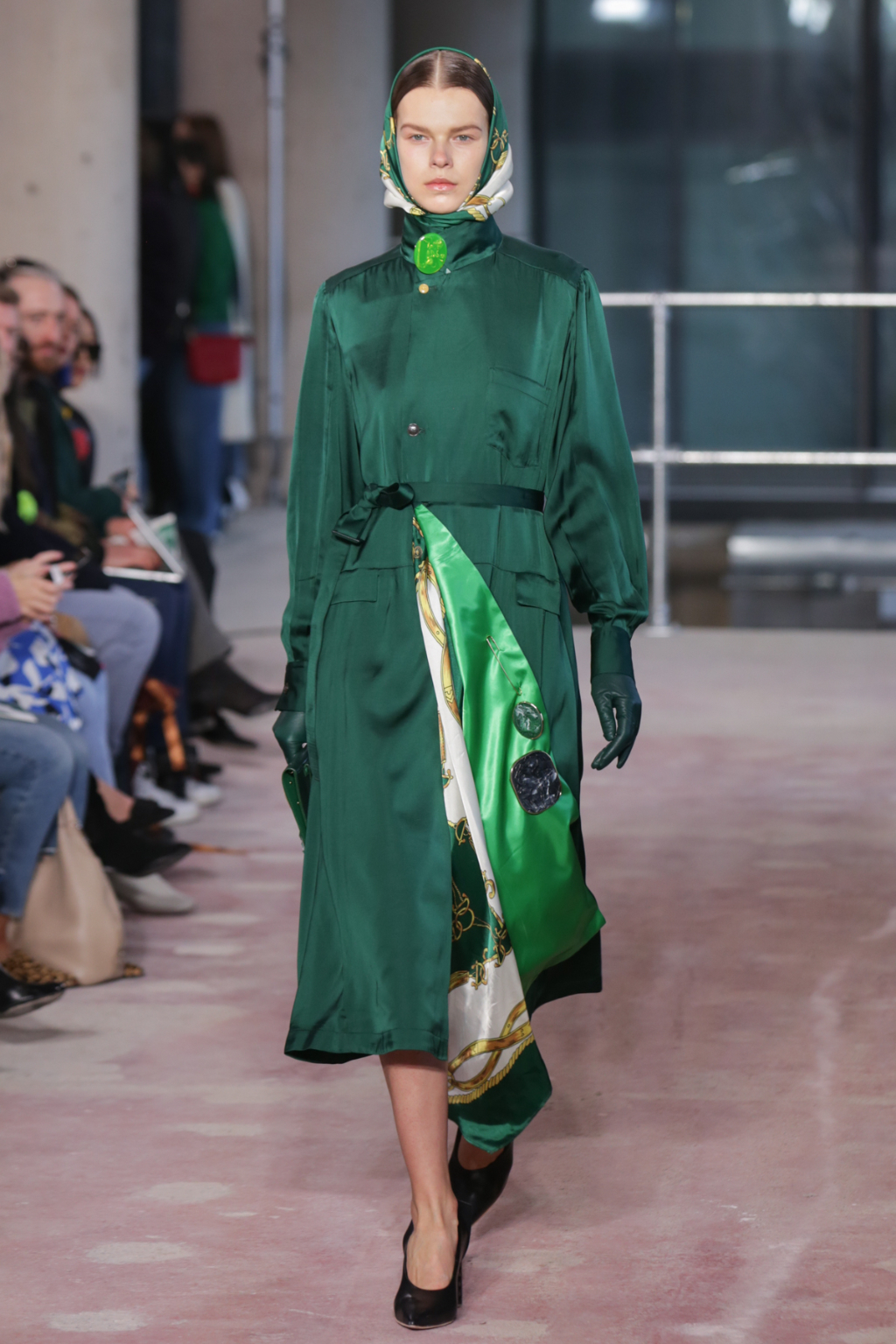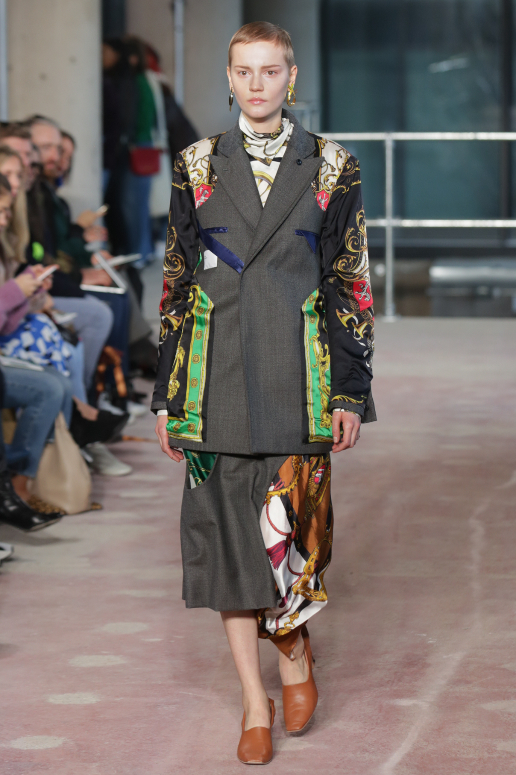Although style sentiments were rather Dynasty-esque (absolutely a compliment, to clarify), they were cannily worked into contemporary pieces. Intricately-printed silk scarves (think vintage Versace or Ralph Lauren) took form in blouses and sleeves, and trickled down the hems of outfits to create asymmetry.