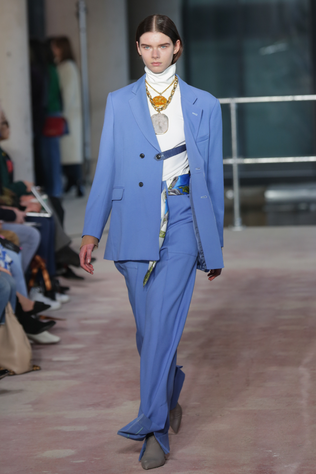 Meanwhile, double-breasted blazers were boxy but at the same time not too structured (some may call that a “boyfriend blazer”), and came in a spectrum of everything from periwinkle blue and crimson. They were typically paired with flowing wide-leg trousers or asymmetric skirts that rippled effortlessly with every movement.