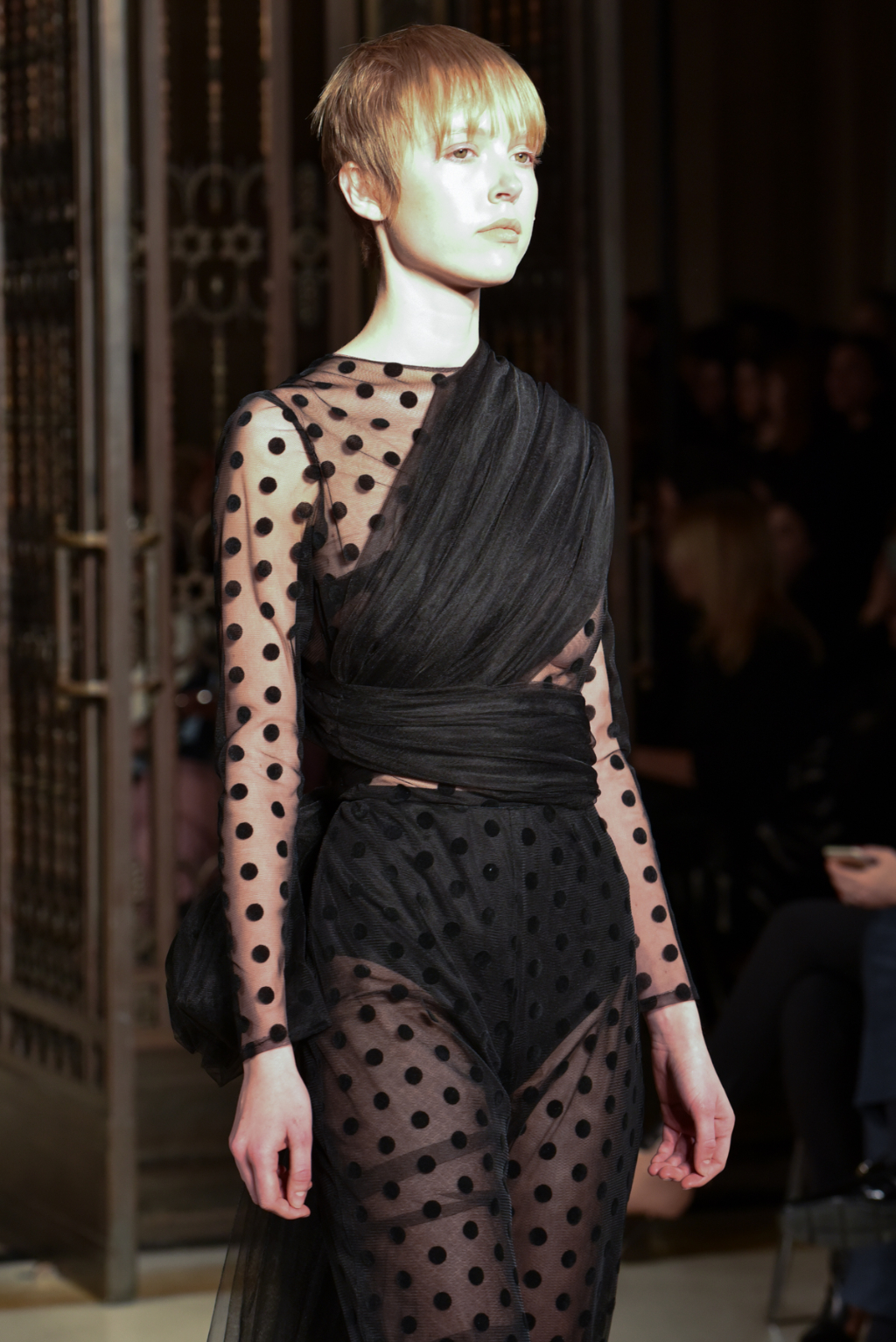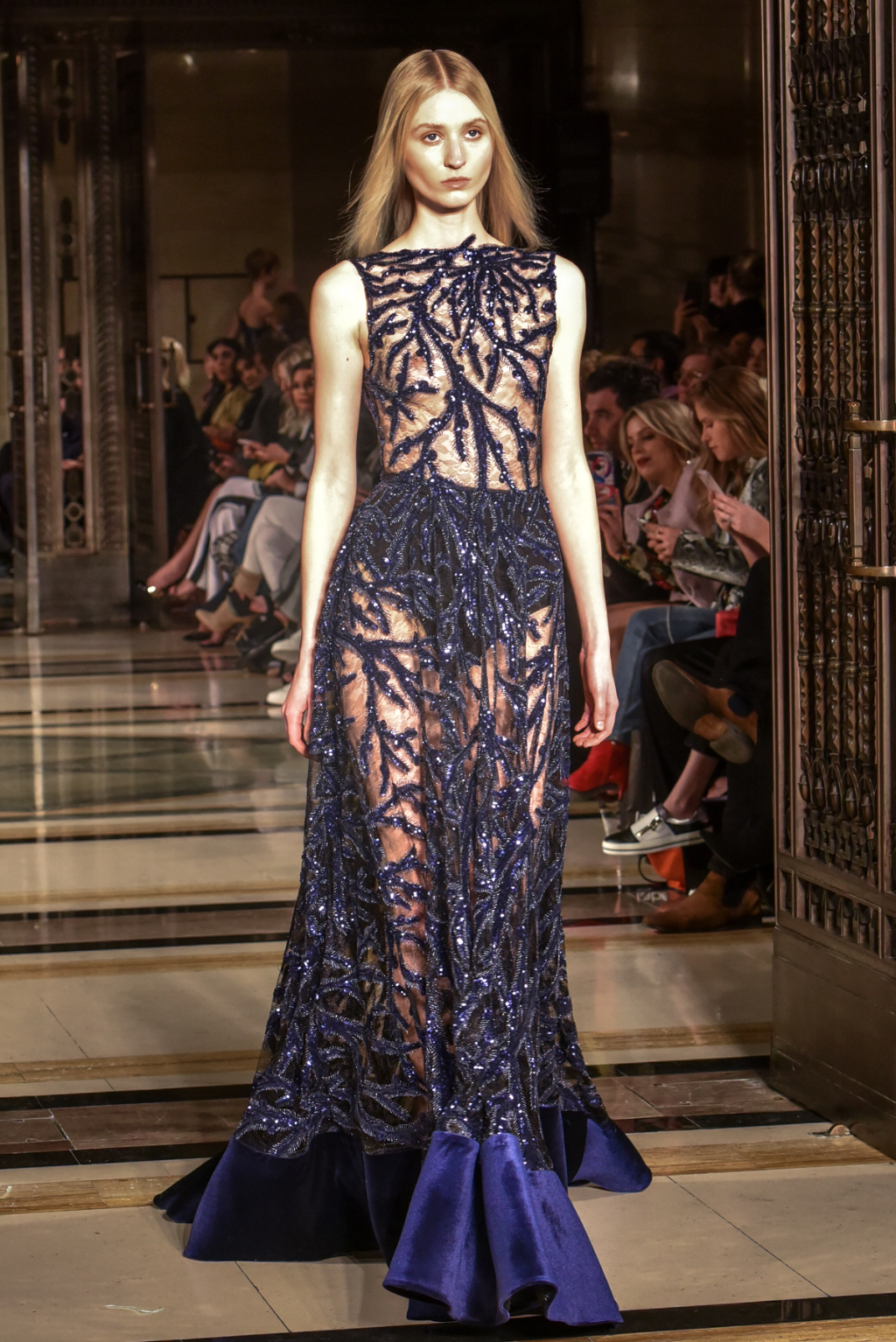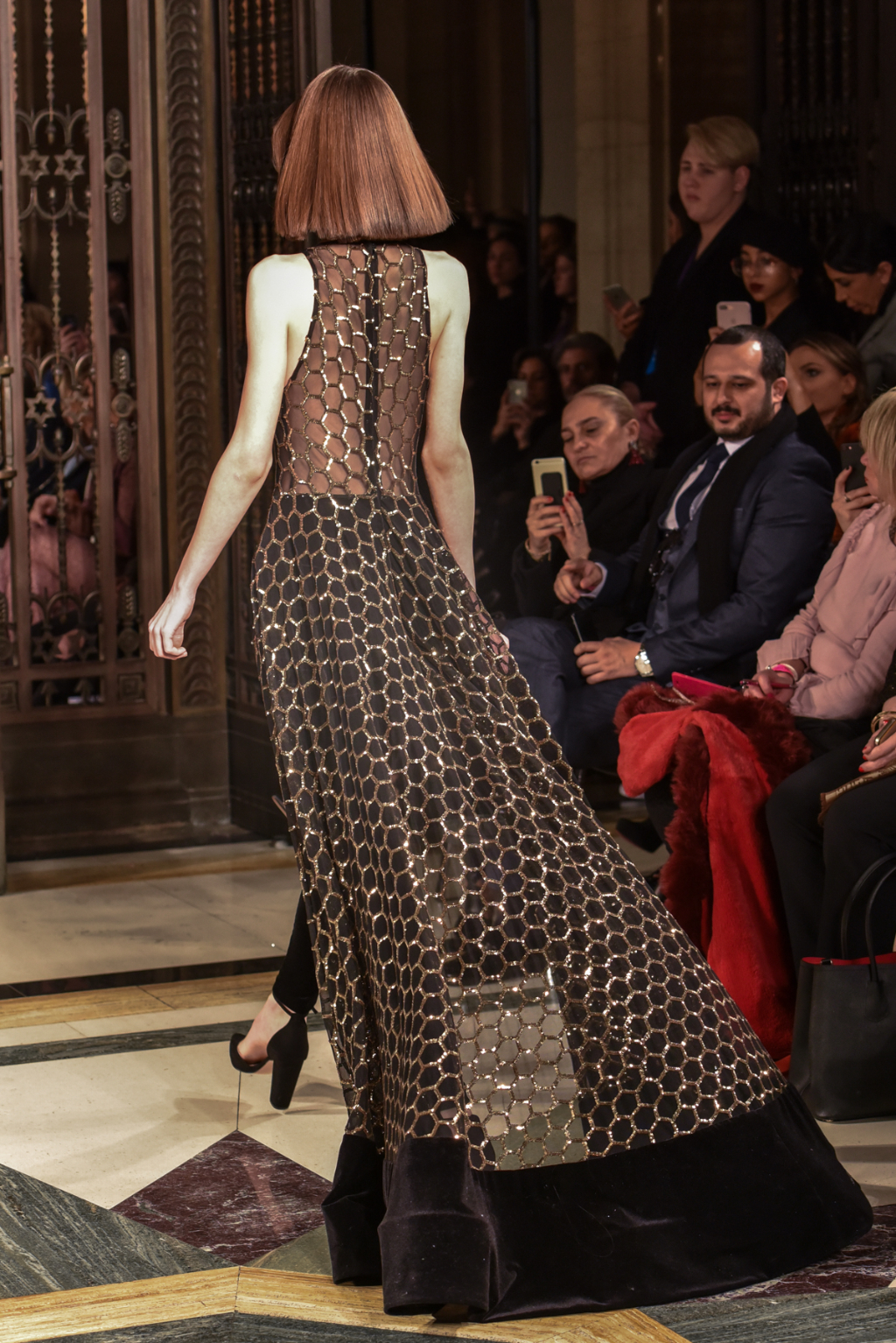 Gowns appeared in a variety of lengths and styles, from one-shoulder column dresses to statement ruffled numbers in silk, handmade lace and weighty velvet. Of course, every piece has been made using couture techniques, with a clear emphasis on beautiful cuts, embroidery and appliqué.