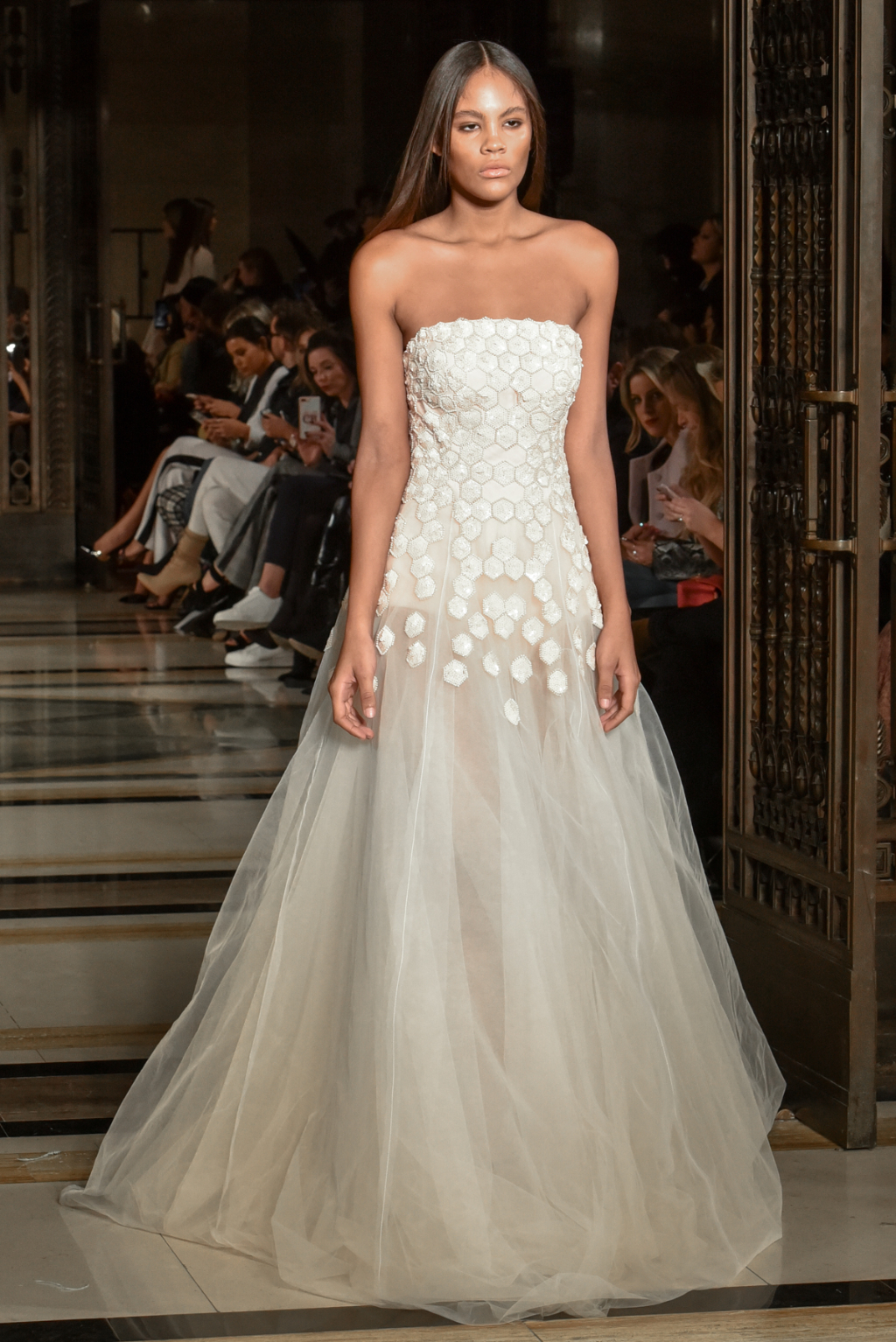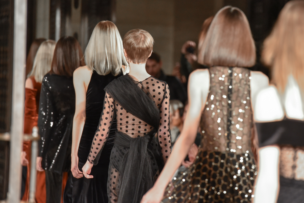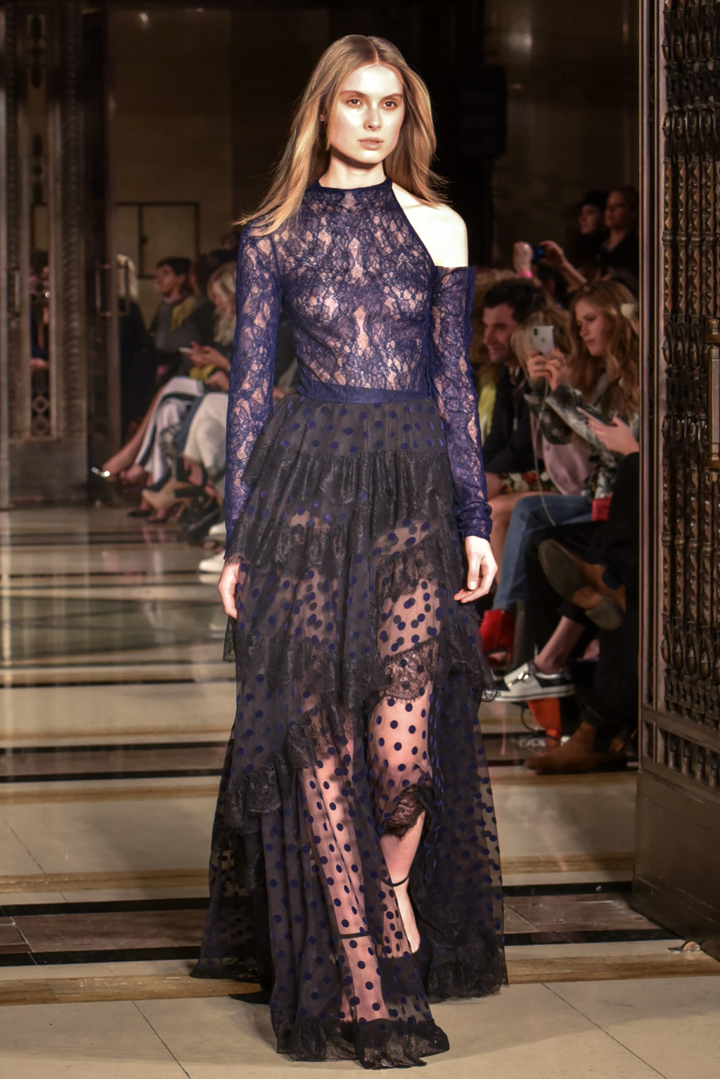 Gowns appeared in a variety of lengths and styles, from one-shoulder column dresses to statement ruffled numbers in silk, handmade lace and weighty velvet. Of course, every piece has been made using couture techniques, with a clear emphasis on beautiful cuts, embroidery and appliqué.