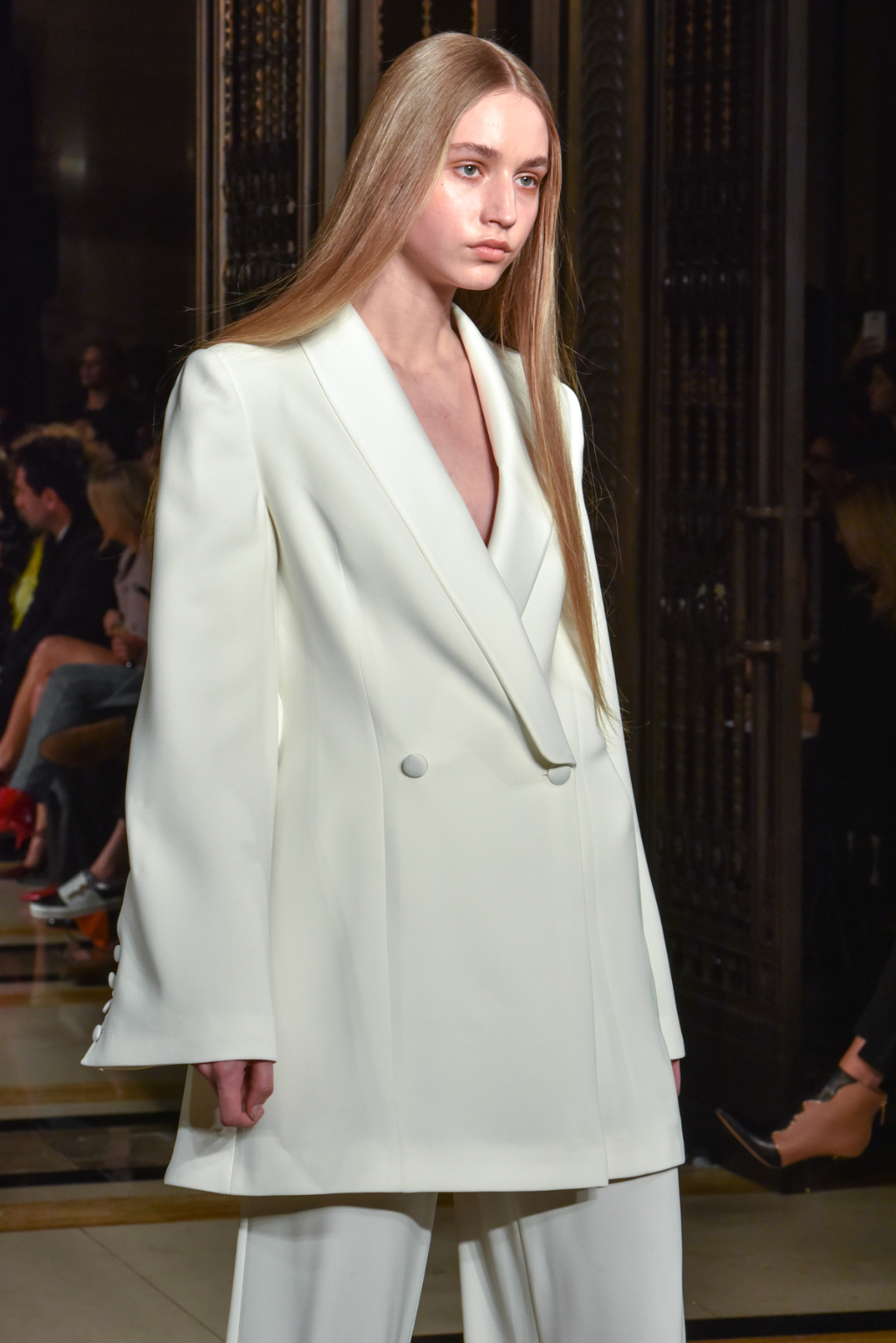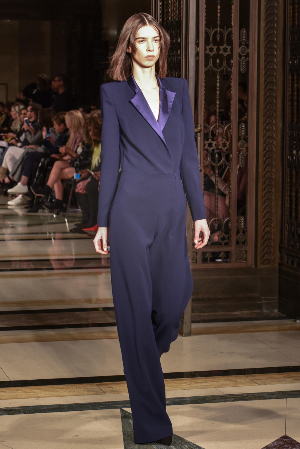 As expected, drama and romance were at the forefront: wide-leg jumpsuits complemented draped shoulders; cascading fabrics skimmed over cinched waists with belted sashes; elegant shirting effortlessly teamed with tailored trousers.
