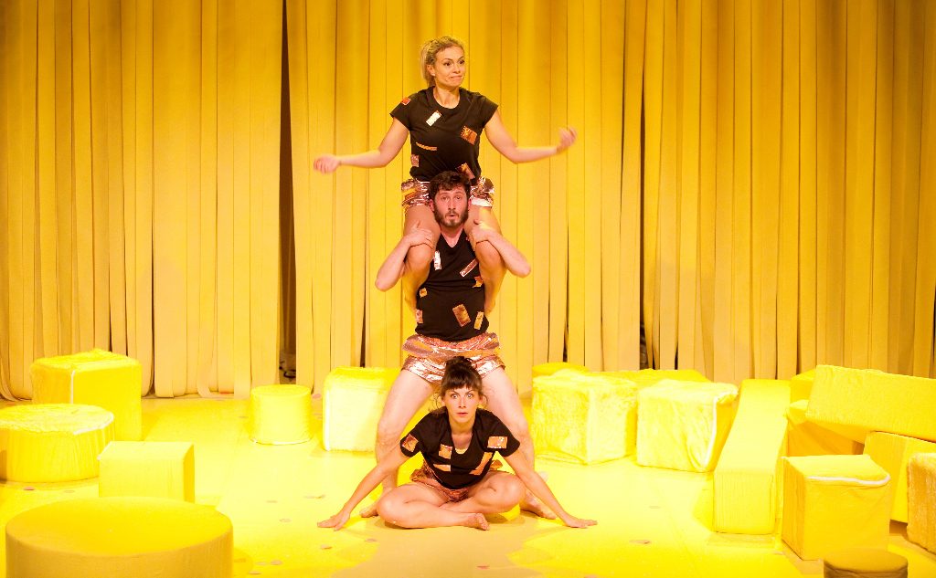 Starting the show with a warning to parents that there is “strictly no shh-ing”, the three dancers took to the bright yellow stage to capture the imaginations of both children and adults alike. Appealing to the senses with bright colours, upbeat sounds, movement and interaction with the audience, Tidy Up celebrates the comedy of chaos and the patterns that can be found within it.