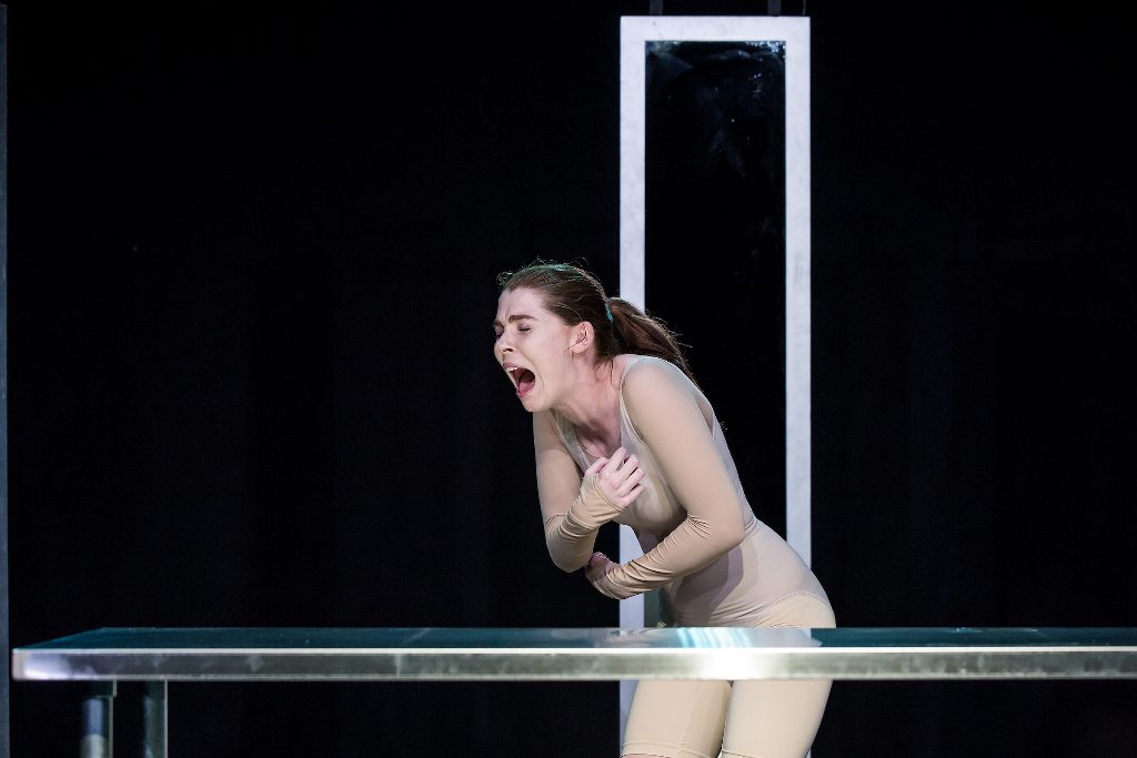 Alice (Milly Thomas, both writer and performer) has killed herself. Yet, for her, the end’s not the end. No, instead she is forced to continually experience the moments before and after her decision to take her own life, roaming far from the morgue that holds her body to witness grieving parents, friends and lovers – and even her own funeral.