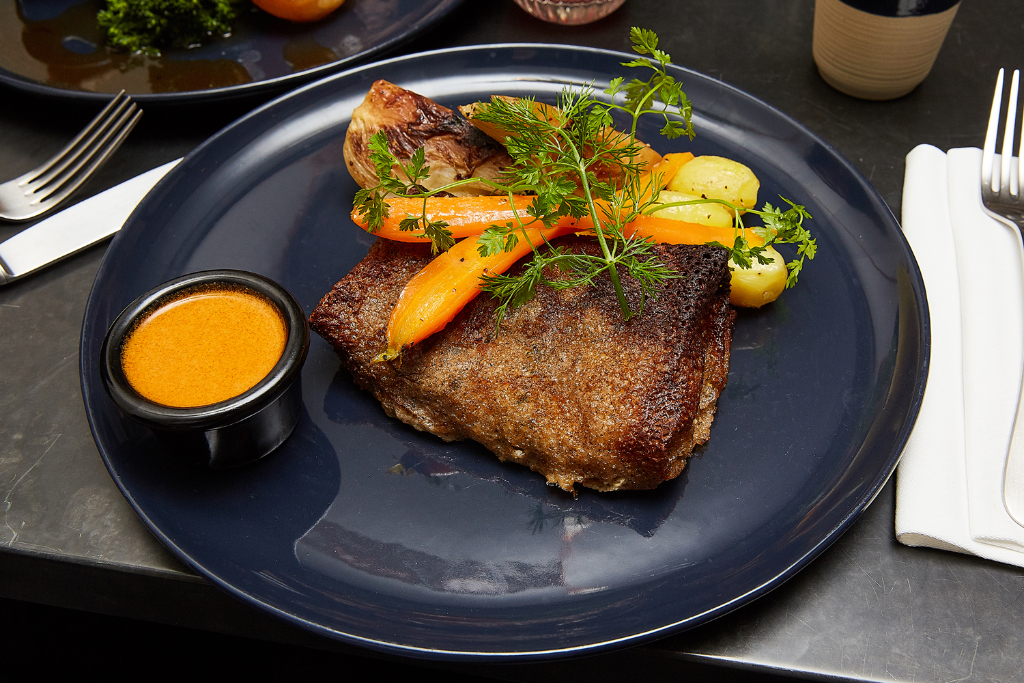 Once you’re ready to tuck in, one glance at the menu suggests that there is an element of surprise to each dish. The main ingredient running through every plate is buckwheat – which is conveniently gluten-free and packed with health benefits. To start, we had the maki rolls – not a typical item on a French menu. All was soon to be revealed though, as an array of fillings – including Smoked Salmon with capers and crème fraîche, Ham Hock with gherkin and piccalilli, and Avocado with tomato salsa, cashew nuts and sour cream – were carefully wrapped in crêpes to mimic the Japanese rolls. These were beautifully presented and a great way to get the taste buds going – a favourable alternative to the traditional Asian classic.