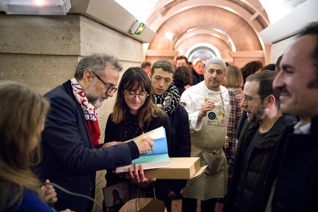 The opening of Refettorio Paris coincided with the launch of the French edition of Massimo Bottura’s book Le Pain est d’or: Ingrédients ordinaires pour repas extraordinaires, published by Phaidon. The book collects stories, recipes and experiences of more than 50 chefs who joined Refettorio Ambrosiano, the first community kitchen, opened in Milan in 2015. Part of the proceeds from Le Pain est d’or will be donated to Food for Soul to create many other community kitchens like Refettorio Paris around the world.