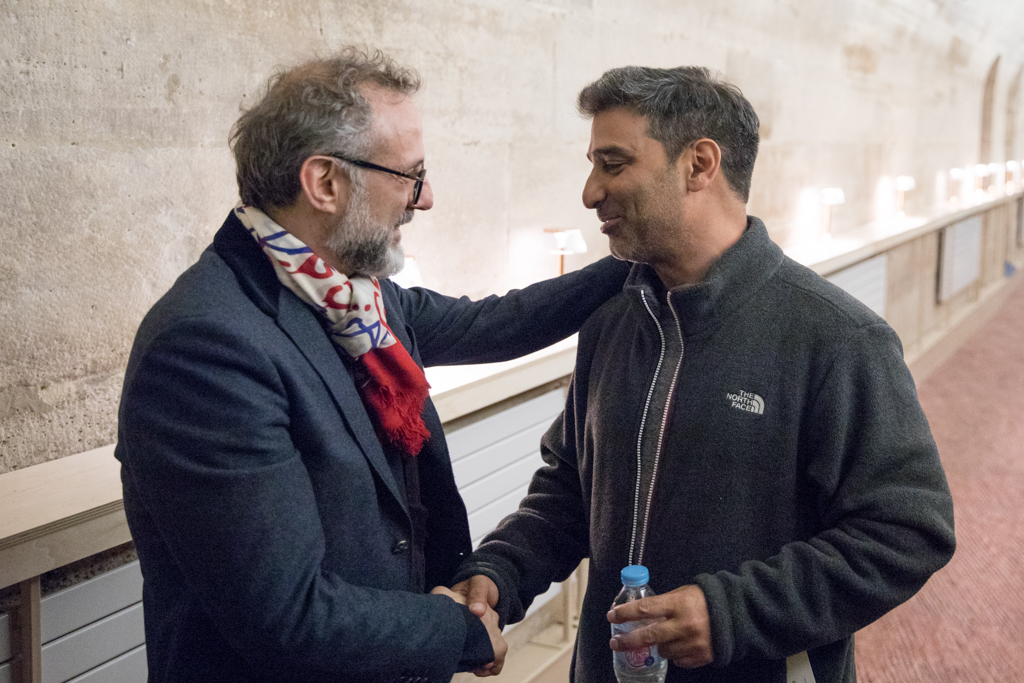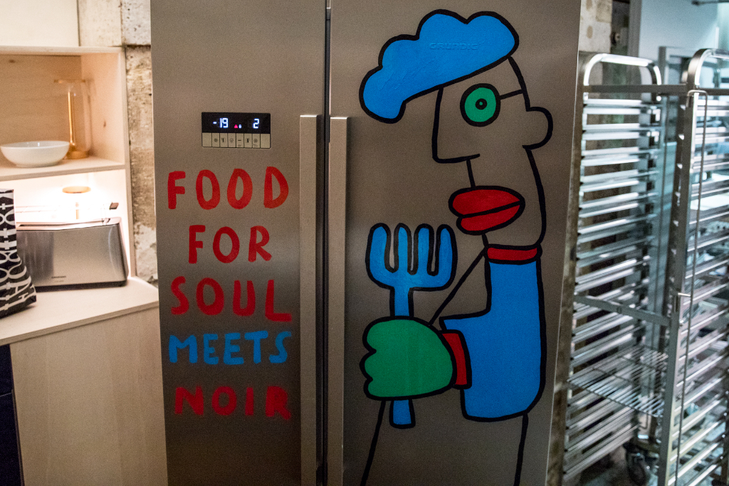 Refettorio Paris is not a charity project, it’s a cultural one, based on Food for Soul’s founding principle that Ethics and Aesthetics are one and the same. For this reason, artists, architects and designers have been working together to transform the restaurant Le Foyer de la Madeleine into an even more engaging and inspiring space. French artists JR and Prune Nourry, internationally known for their multi-disciplinary installations in public spaces all over the world, have created installations specifically for this site. In the months and years to come they will also invite other artists to contribute to the history and life of Refettorio Paris, starting with young Afghan artist Kubra Khademi. Renowned for using recycled materials to create their projects, architect Nicola Delon, co-founder of Encore Heureux, and designer Ramy Fischler, founder of the agency RF Studio, have applied the same philosophy to the renovation of Refettorio Paris.