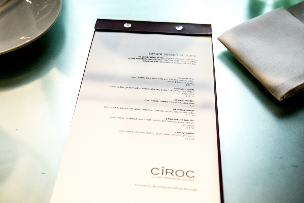 The Sakura Ciroc Menu is available at Zuma, 5 Raphael St Knightsbridge London SW7 1DL, from 26th March until 17th June 2018. For further information and to book visit Zuma’s website here.