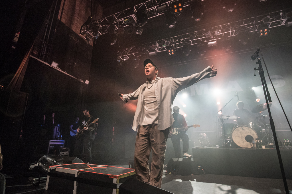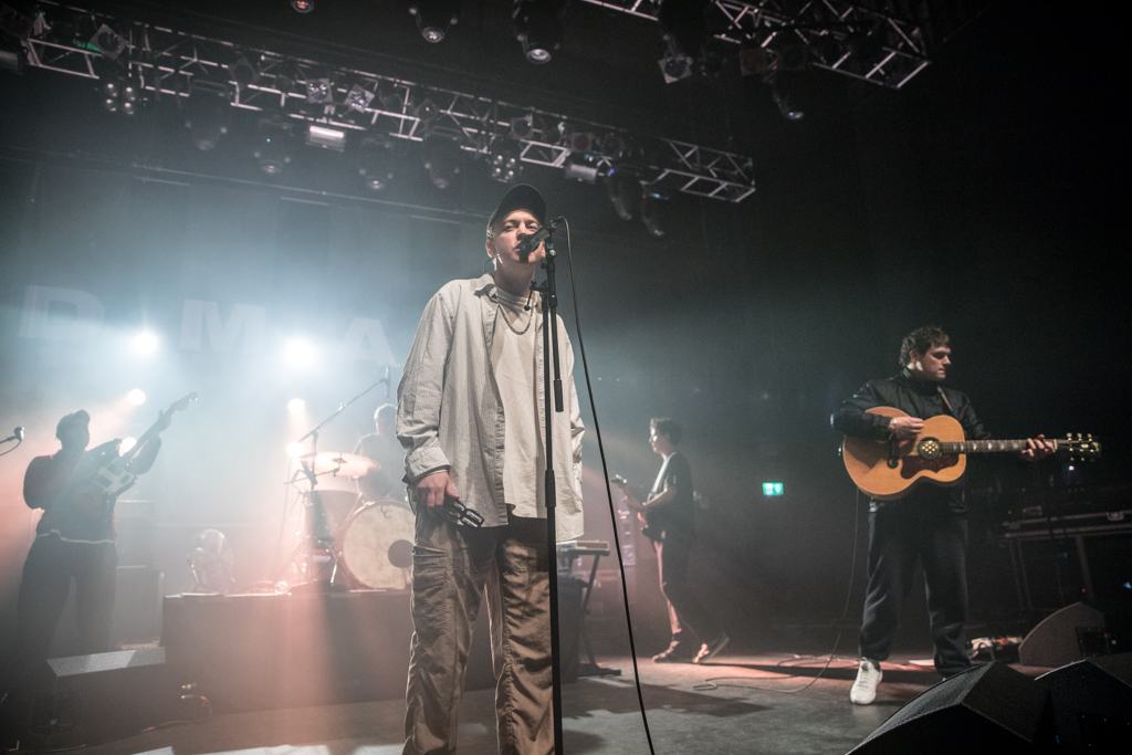 In the cavernous hall of the Kentish Town Forum, a huge, eclectic crowd anticipated DMA’s with a palpable hype. But this electric atmosphere was belied by a modest stage setup. There was no jungle of instruments and assorted gear, just the usual suspects. The band’s entry was similarly subdued, and its six members filtered nonchalantly onstage. Their reception was nonetheless explosive – and they definitely looked happy to be there.
