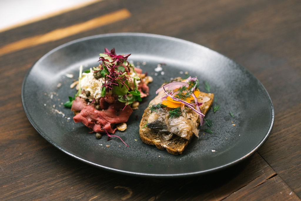 The next smørrebrød sandwich was the Rare Roast Beef Served with Celeriac and Horseradish Remoulade, and Crispy Fried Onions and Capers. The meat was perfectly pink and, again, slightly sweet, which counteracted with the tangy sauce – finished with the fried element to add a satisfying layer of texture.