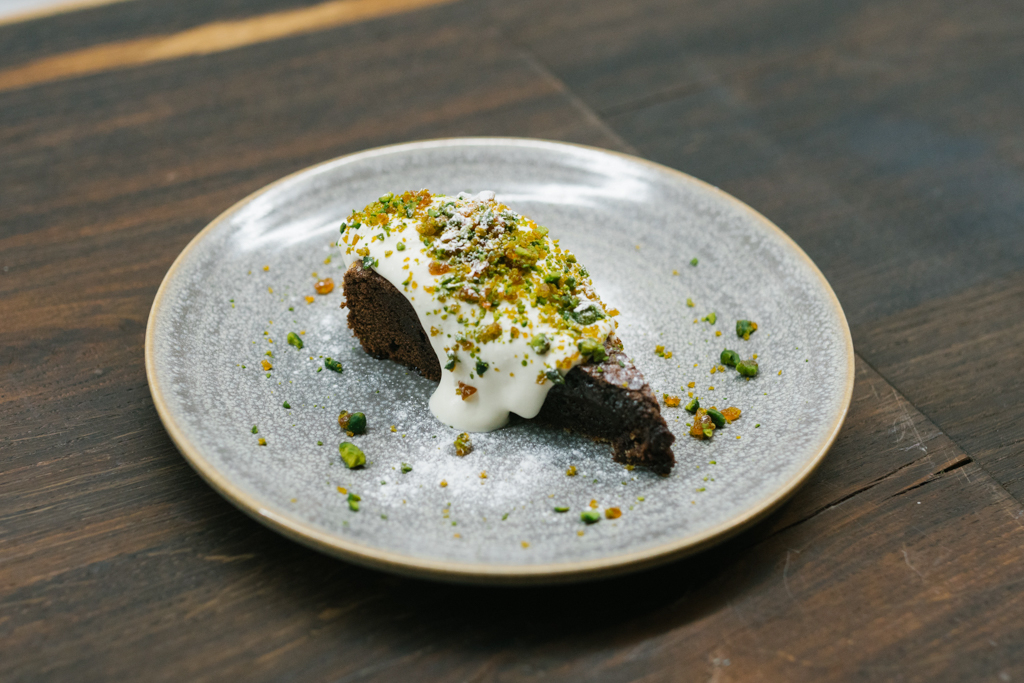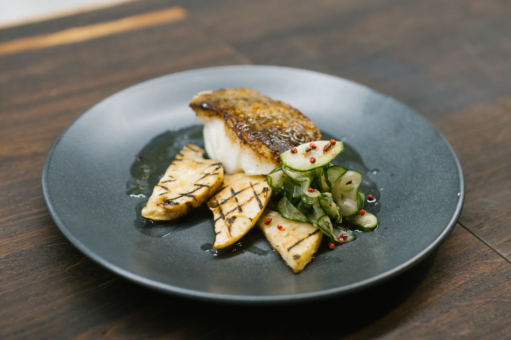 Appetites well and truly primed, it was onto the mains. We went for the Roasted Cod Cooked in Brown Butter and Served with Roast Celeriac, Pink Pepper and Dill-Pickled Cucumber. The flesh of the fish was meaty yet delicate and charged with a distinct richness from the butter. The accompanying vegetables added various layers to the flavour – one to be savoured as you won’t want it to end.