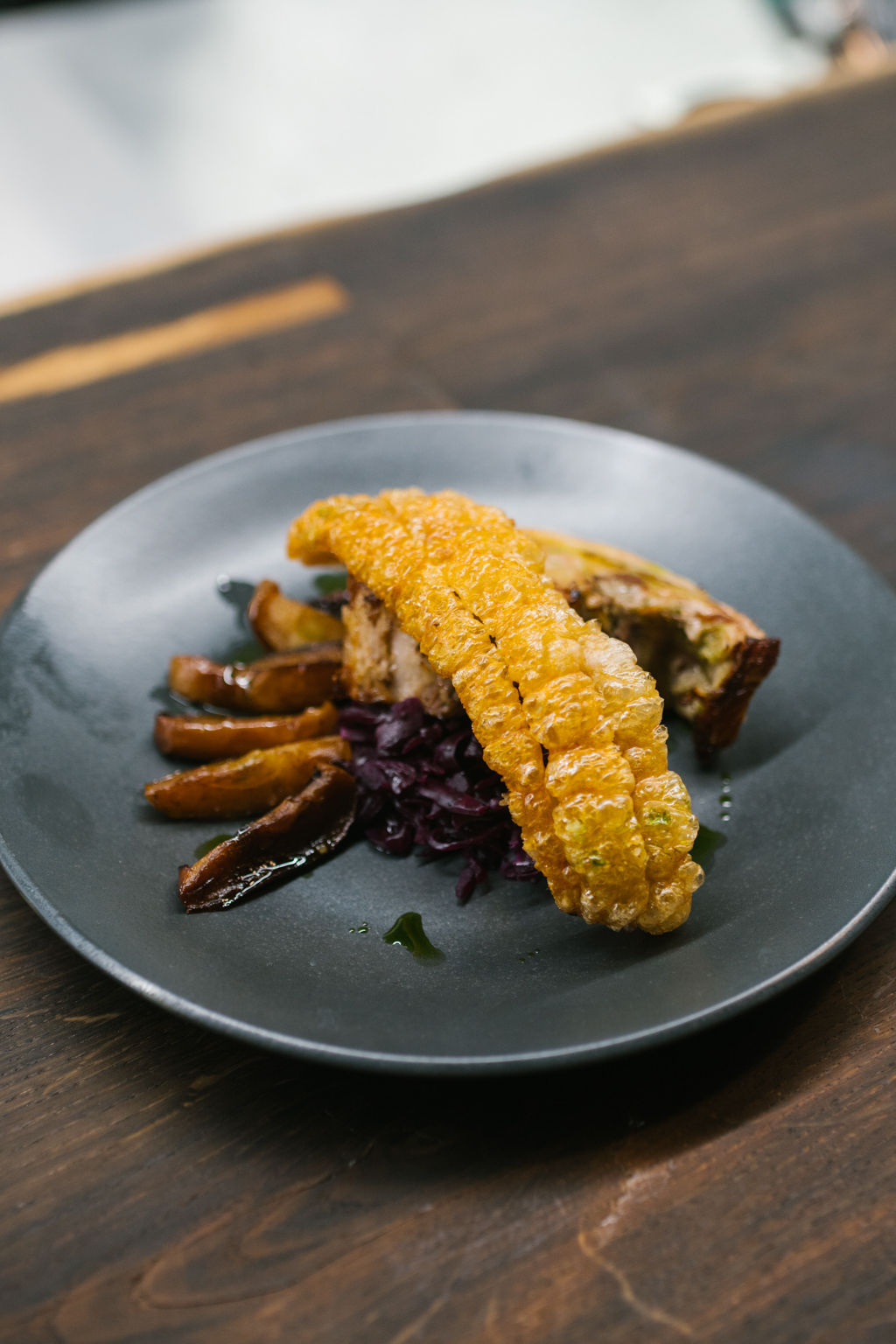 We then moved onto a Nordic favourite: Roast Pork with Fermented Red Cabbage and Apples. The meat was extremely succulent, drawing flavour from a simple trim of fat. The cabbage and apples also carried a slightly tart, aromatic flavour without being overbearingly sweet. However, it was the crackling that stole the show, which was – dare I say it – probably some of the best I’ve ever had.