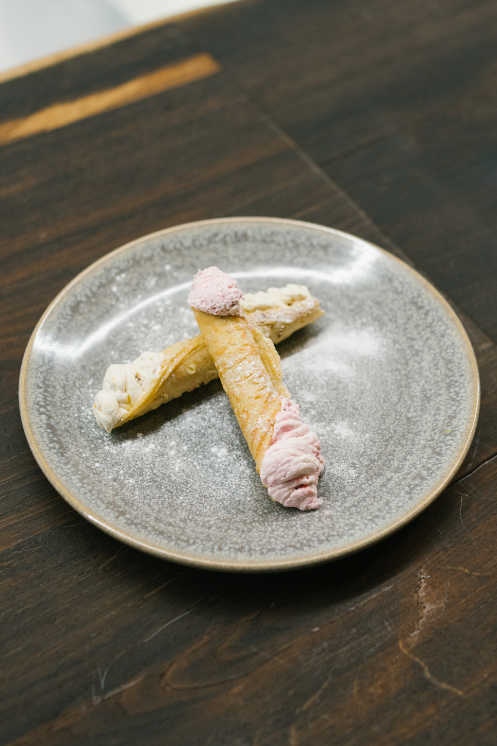 Always room for dessert, we decided to try the Kladdkaka (a sticky chocolate cake) with Whipped Cream and Pistachio Praline. Gooey, velvety and rich, this can only be described as heavenly, so share at your own peril! We also had the Rullrån, a Norwegian waffle cookie, one filled with cloudberry cream and the other with lingonberry cream. The whipped fluffy cream combined with the tartness of the berries made these really easy on the palette.