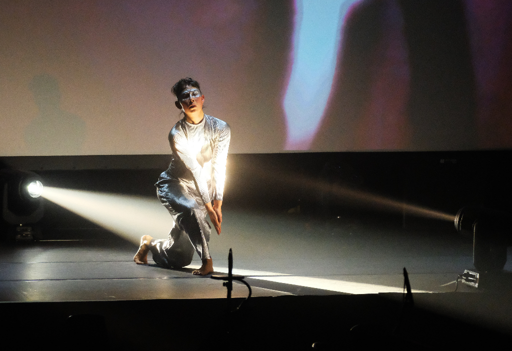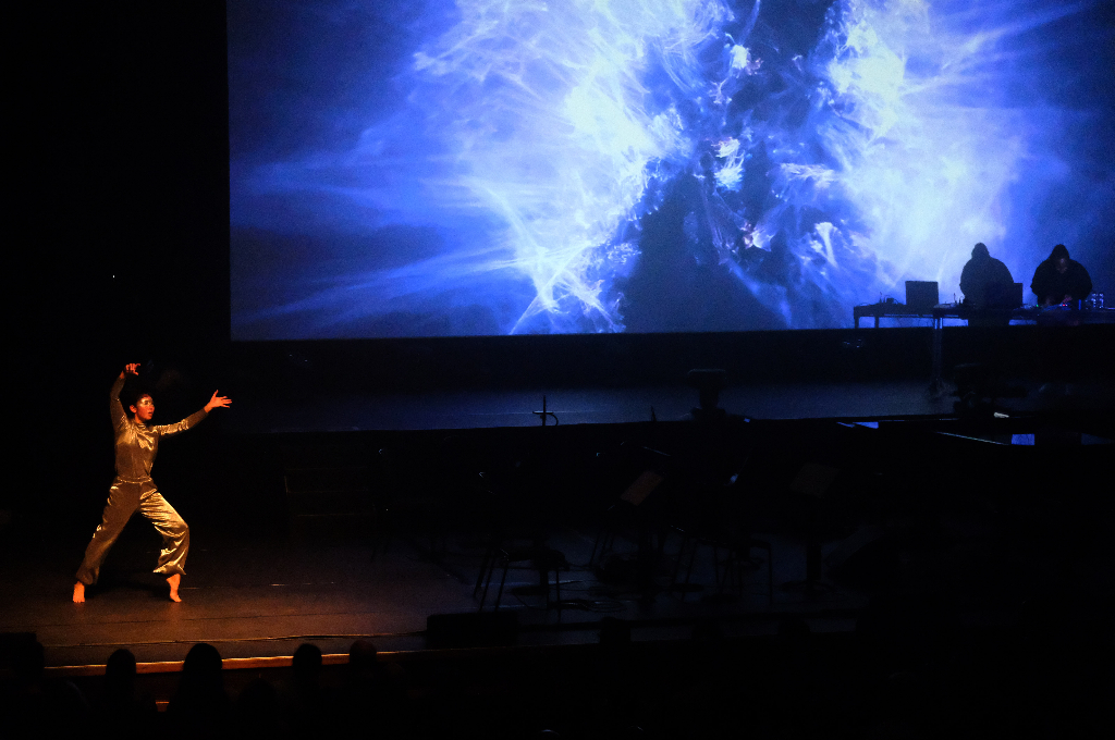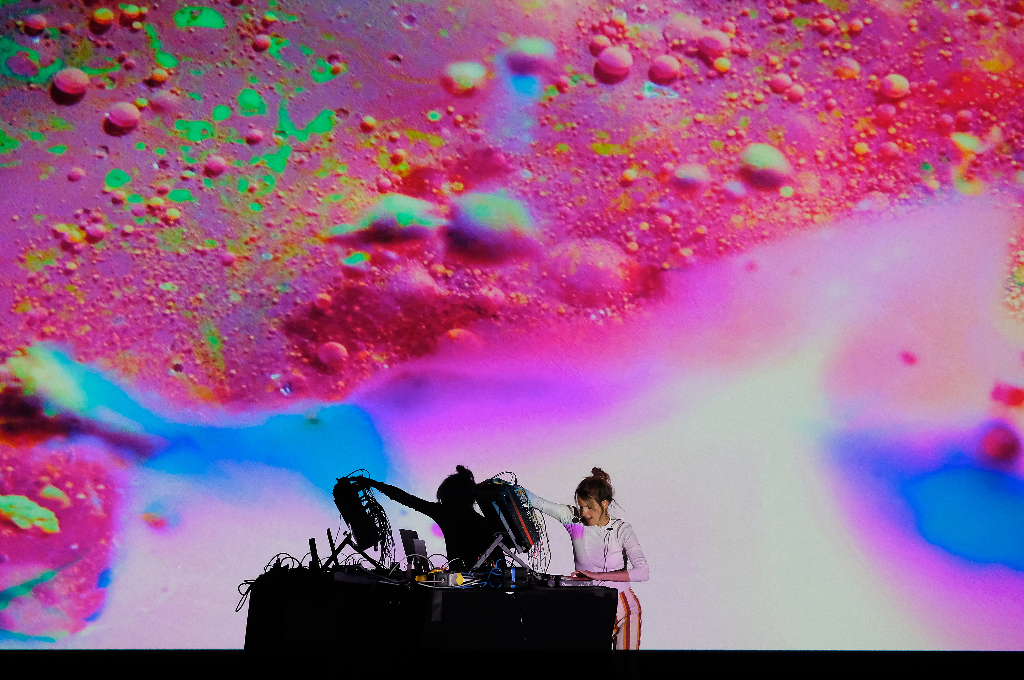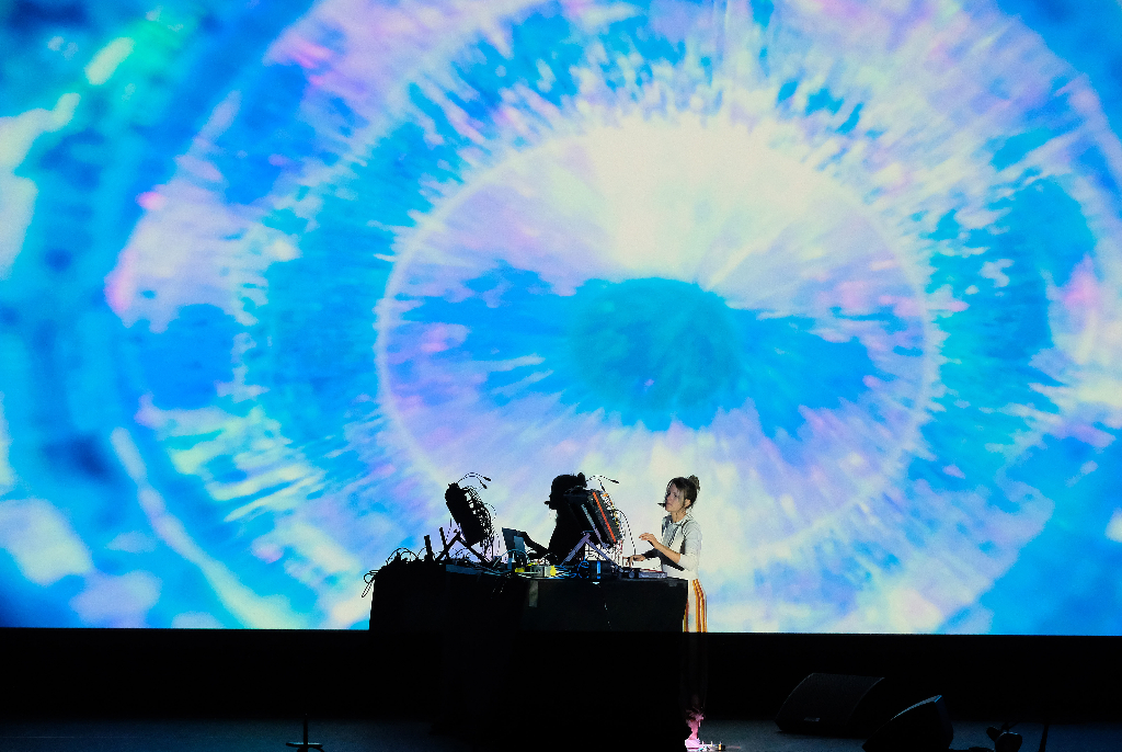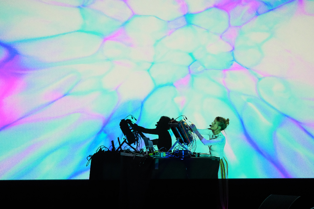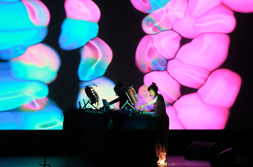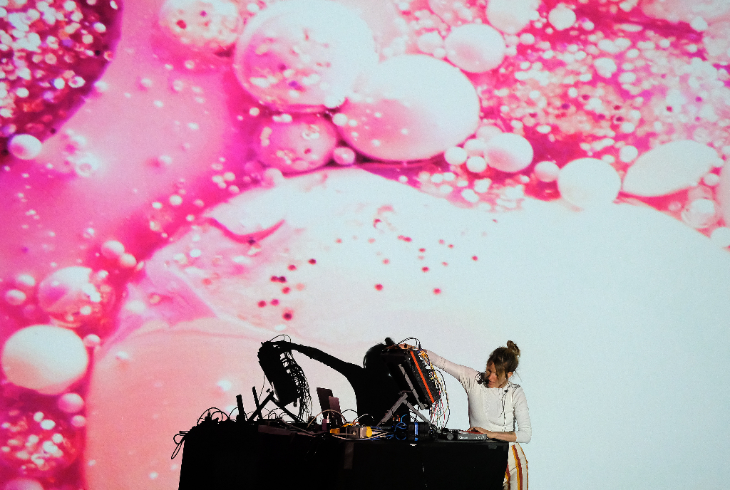 The second piece of the night is one of the best examples of contemporary sensory synthesis. Kaitlyn Aurelia Smith presents an innovative work drawing from her 2017 release The Kid, with FX vocals and Buchla Music Easel modular synthesizer to generate a very complex sequence of synth-heavy sounds. Multiple movements explore broad soundscapes, inextricably combined with videos showing the most varied array of colours and textures. From solid blocks, to popping blobs, from metamorphosing liquids to ethereal lights, the images constitute an inseparable part of the artwork witnessed. Music and video engage and uniquely inform each other, disclosing the wonderful possibilities offered by the electronic genre.