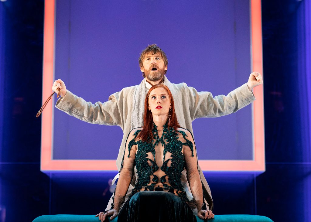 Hampton and director Gérald Garutti have decided to have the characters switch from French to English throughout the performance, with the assistance of surtitles. This makes for a unique experience but means that you’re constantly keeping one eye on the translation. Yes, it’s nice to hear the classic author’s original alexandrine rhymes, but I’m not sure whether it really enhances our understanding of the text in any great way. This aspect of the production also means that the comedy suffers in translation. Surtitles alone cannot land a joke, neither can a French actor whose fluency in English isn’t exceptional.