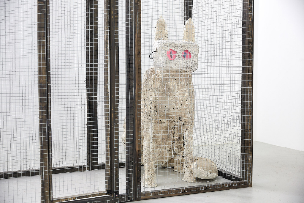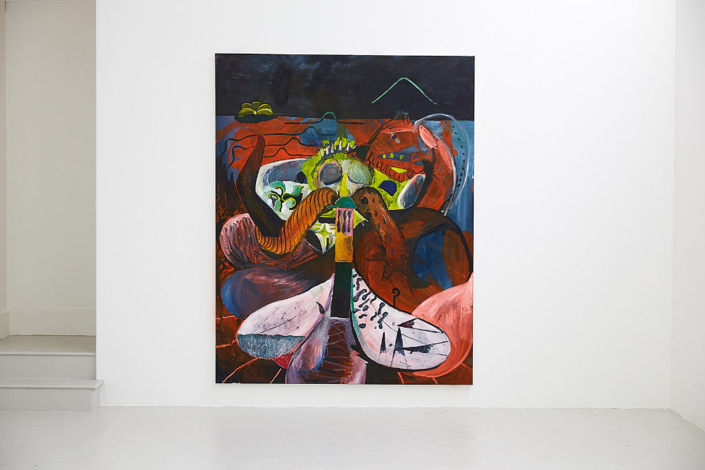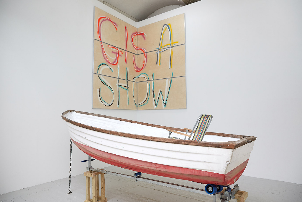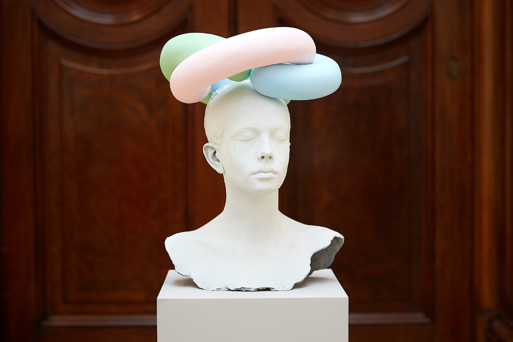 Conversely, there are also a few striking examples of in-your-face works by established artists, including a large installation in the courtyard by Anish Kapoor incorporating a vast red dot, which acts as both moving monument and jokey reference to the fact that almost all the pieces on view inside are for sale. The central round hall of the showcase also features an enormous suspended textile sculpture by Portuguese artist Joana Vasconcelos, which sets the tone for the show: fun, engaging and referential.