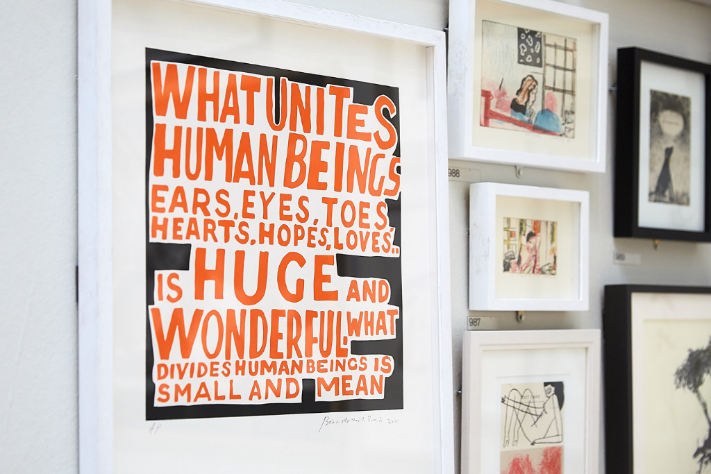 Even if you start flagging after seeing the vast number of works in the main spaces (there are around 1,300 pieces of art on display), it’s still worth heading upstairs to the Sackler Galleries, to which the Summer Exhibition has been extended for the first time. Here visitors will find works on paper, many of which are at a much more affordable price point and often engage with interesting themes.