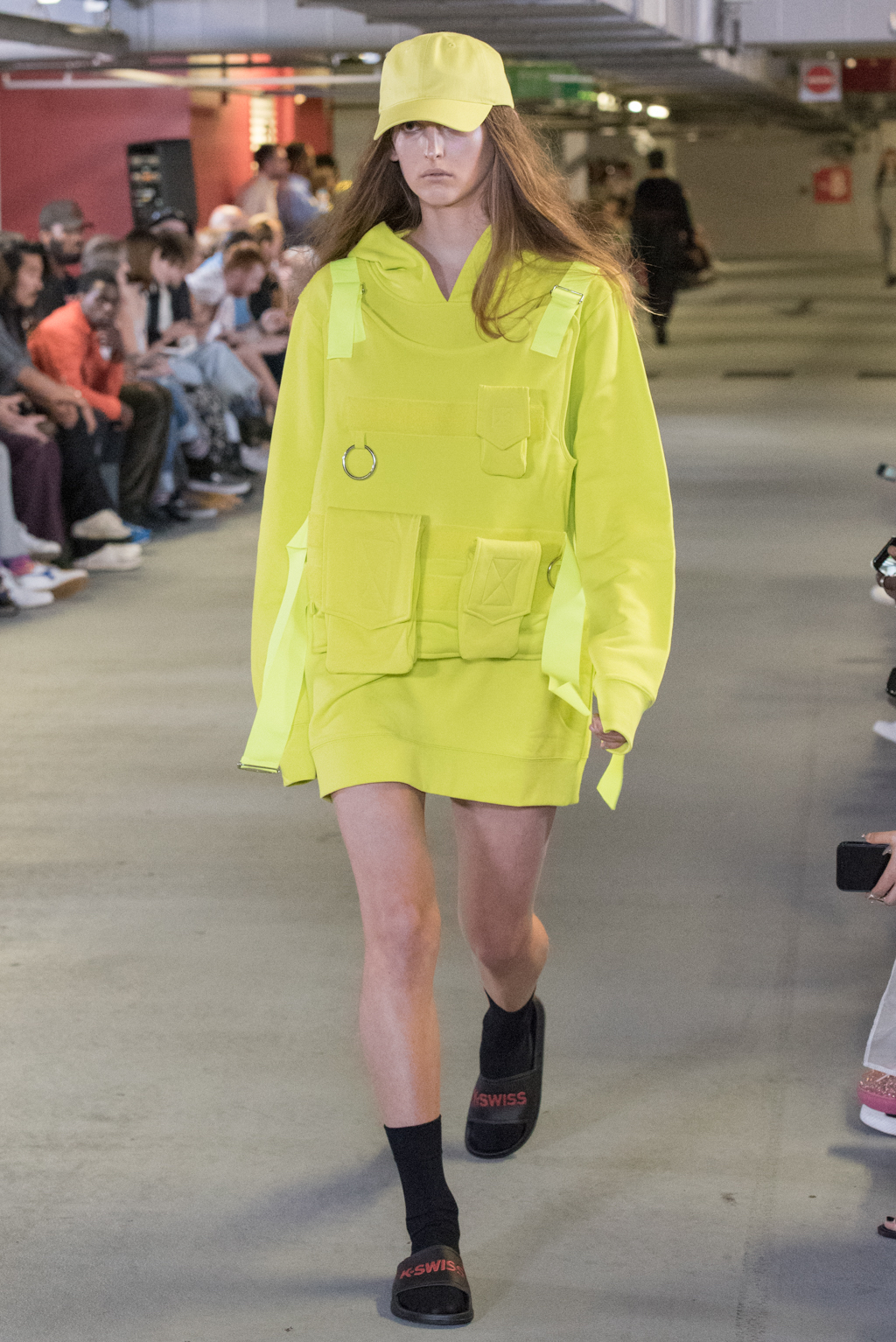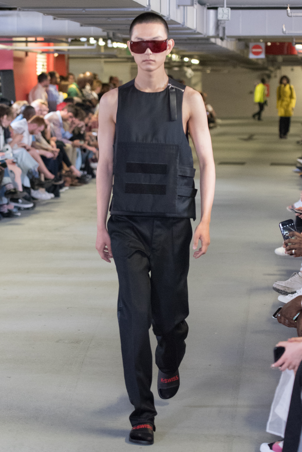 Matthew Miller presented their new 2019 collection at Q Car Park Basement, 20 Newport Place for London Fashion Week Men’s. Together with K-Swiss, the British fashion designer is defining what it means to produce sustainable fashion; in two words, recycled streetwear. The collection has been made out of 100% recycled old band merchandise, without compromising style or ethics. Here are our images from the show.