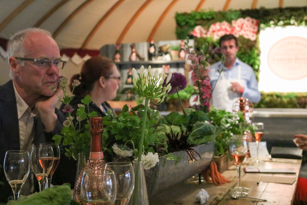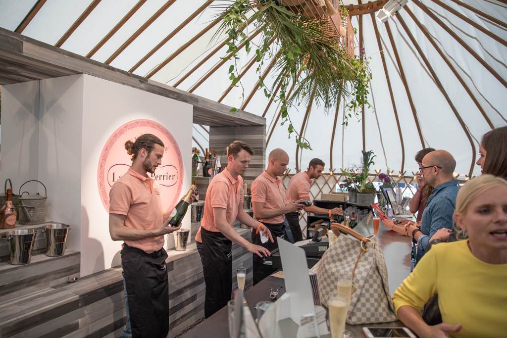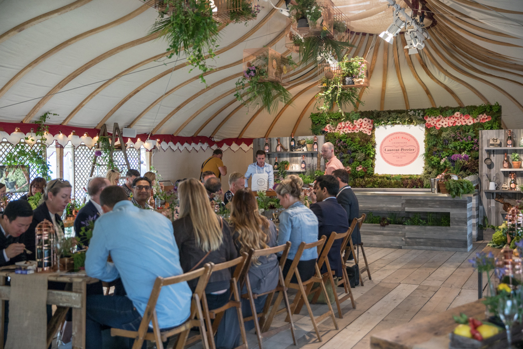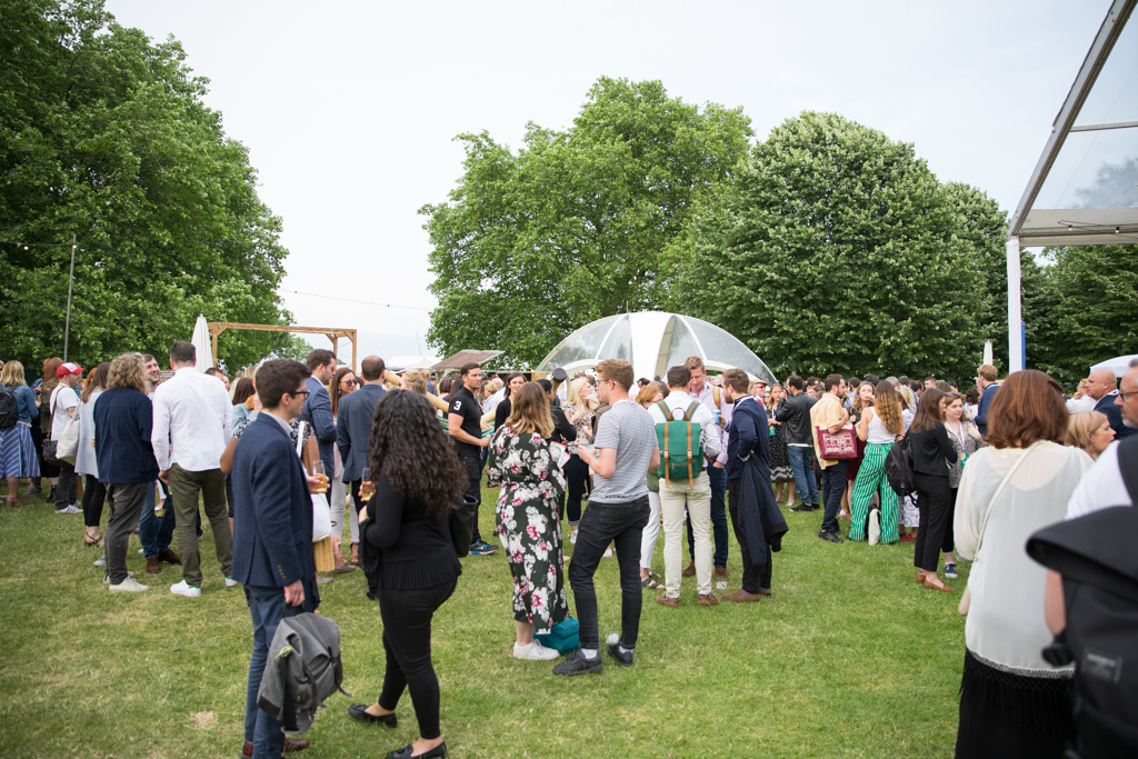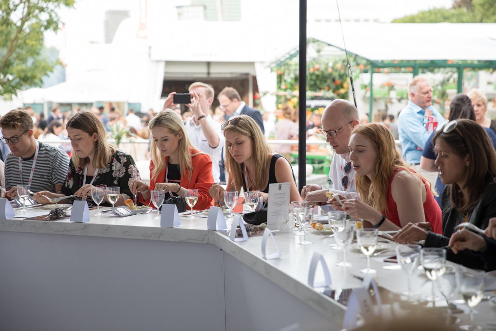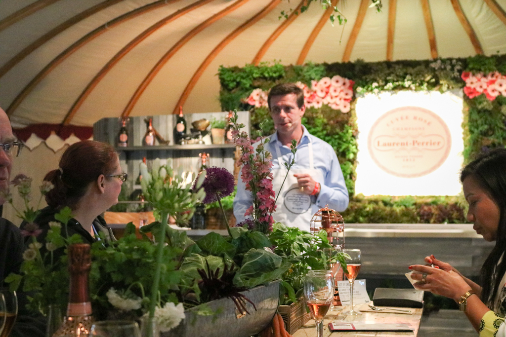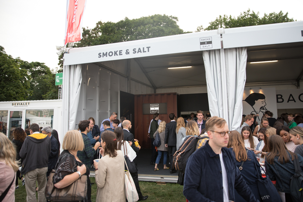 One of the finest experiences is the Laurent-Perrier masterclass. The session is centred on the tasting of the renowned Cuvée Rosé, which celebrates this year its 50th anniversary. Introduced by a light clear champagne La Cuvée, the countryside-inspired club hosts a delicate meal to accompany the protagonist of the tent: the tangy and delightfully sparkly rosé. Today the food is provided by West African restaurant Ikoyi, whose head chef and co-founder Jeremy Chan presents the three courses of the night. First, a sweet octopus tentacle steamed, caramelised and then rested in shito source. Then, a spicy jollof rice with cured prawns, strongly flavoured with smoked ginger. The real gem, though, arrives with the sweet and delicious dessert: tomato ice cream with hay rice mousse, with a surprising flavour very similar to raspberry, but more balanced. This is indeed the perfect matching partner for the delicate brut. Respect for nature and organic choices were central concepts, as Laurent-Perrier took the chance to promote their partnership with food waste farming organisation Indie Ecology, whose founder, Igor Vaintraub, was also present at the night.