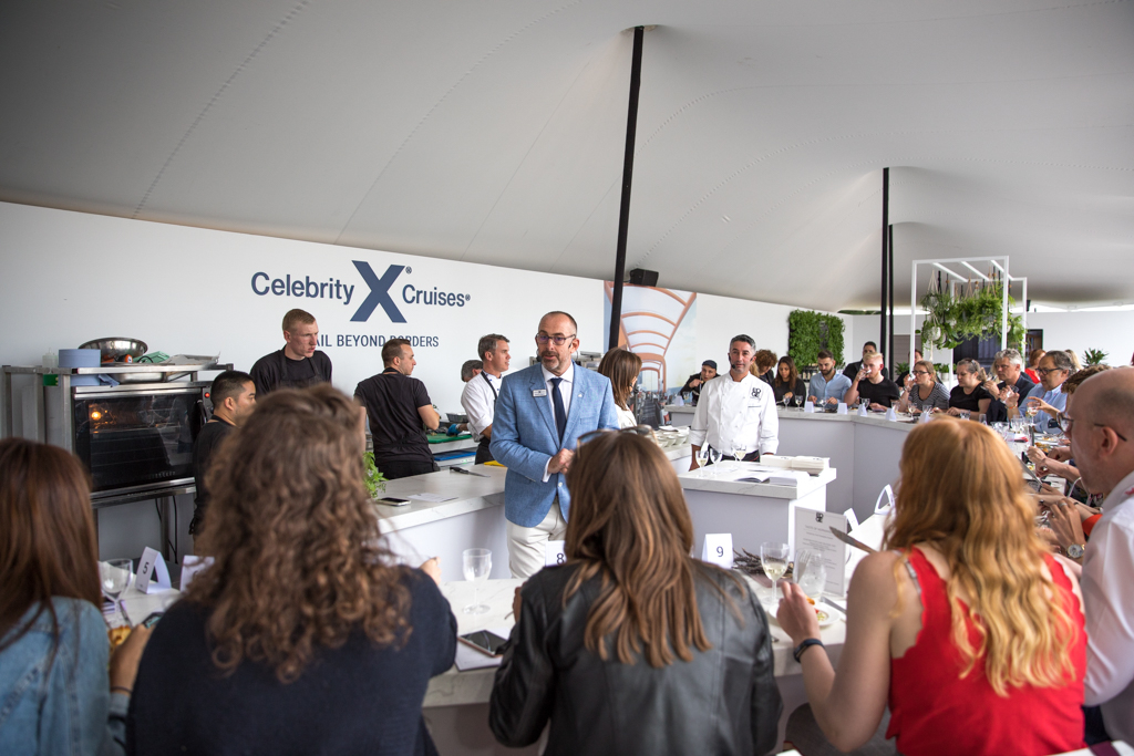 Though unexpected in a park, a boat restaurant is recreated by Celebrity Cruises, where former Michelin-starred chef Cornelius Gallagher showcases his new culinary journey Celebrity Edge, officially launching in November this year. Catering for a state-of-the-art cruise liner still currently in the shipyard, the team offer an exclusive tasting of their accompanying (though perhaps less groundbreaking) menu. We try two of the concepts: Normandie and Cosmopolitan. From the former, a comfort dish of Alsatian Potato and Gruyère Tart, paired with Vermentino di Bolgheri, and then a melt-in-your-mouth Lavender Roasted Salmon; from the latter, a smoked trout with grilled carrot and pleasantly rounded slices of mozzarella. This was paired with Alsatian pinot blanc and followed by an exquisitely executed New York steak loin on parsnip purée. We spoke with the chef, who told us how he “a restaurant experience is like a song, and each note in a song is like a detail in a restaurant experience. If the details aren’t right, if there is one detail that is not right, it is like hearing to a sour note in a song: it flows you out of the experience.”