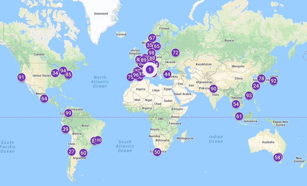 4 Bangkok, Barcelona, Copenhagen, Hong Kong, Lima, Mexico City, Moscow, Sao Paulo 3