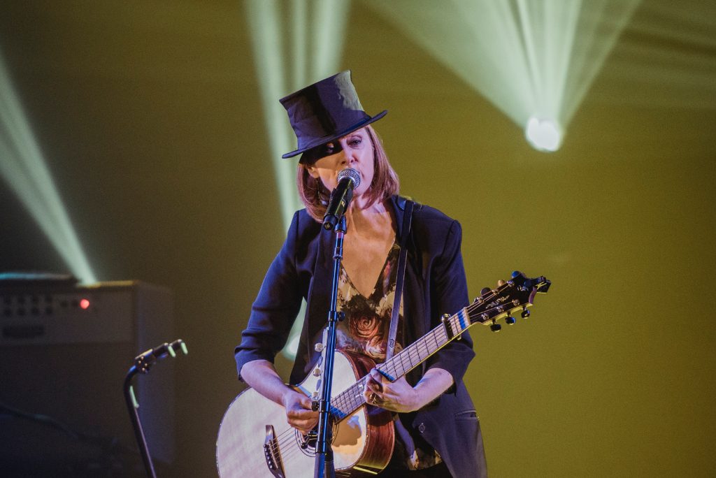 Folk-rock singer-songwriter Suzanne Vega’s career spans an impressive 30 years. She appears on stage while lead guitarist Gerry Leonard strums the intro to opener Fat Man and Dancing Girl (99.9F), and it is extraordinary to hear how unchanged her vocals are; this is followed by Marlene on the Wall, from her 1985 debut, which sounds exactly as it did all those decades ago. The musician recalls she always wanted to be invited to Meltdown Festival, thanking Robert Smith who finally “came through”. Small Blue Thing produces goosebumps, a mesmerising story unfolding with Vega’s flawless vocals and Leonard’s delicate strumming, a moving highlight. Another classic, Solitude Standing, exhibits the singer’s ability to carry the performance with just her voice and two guitars. Vega jokes: “Gerry’s face-melting skills were on display in this song, so I hope you’re ready to have your faces melted at Meltdown Festival”. Blood Makes Noise introduces a powerful and edgy element to the show, the stage lit scarlet red. The undeniable melodic beauty of Left of Center is transporting, Leonard’s swift guitar plucking glimmering in the echoing hall, while other equally alluring highlights include I Never Wear White, Luka, and Tom’s Diner.