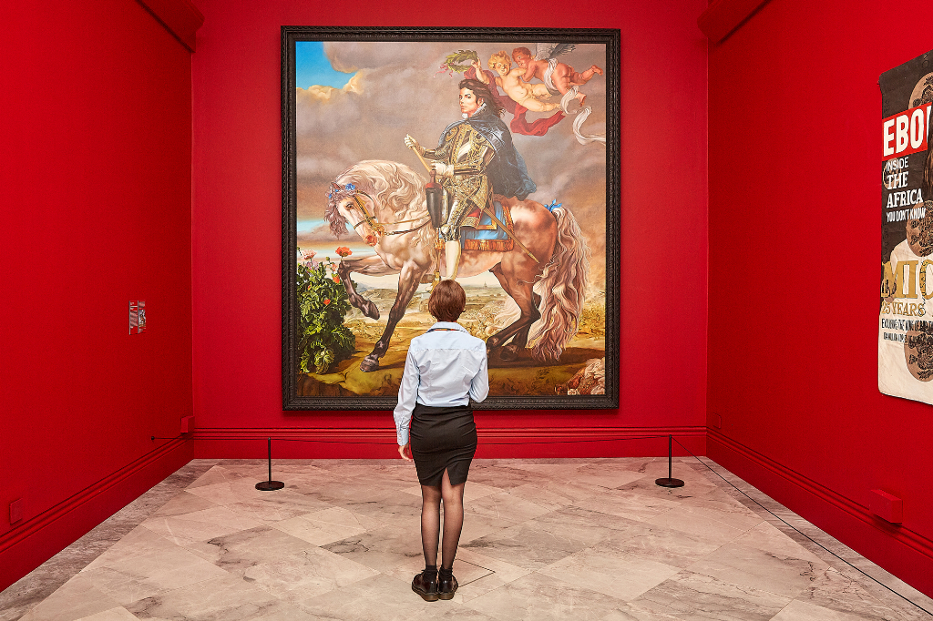 Arguably the bravest work on show is Jordan Wolfson’s video piece Neverland, showing just Jackson’s eyes, silent, whitewashed, as he denies allegations of child molestation. It is a moment of pause that addresses the elephant in the gallery without labouring the point or resorting to value judgements.