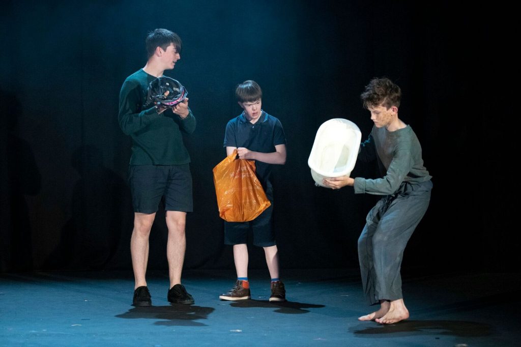 A Connections Festival performance, Phoebe Éclair-Powell’s These Bridges presents a tale of disaster in London as the Thames’ banks overflow, passengers on the Circle Line are drowned, London is apocalyptically flooded and north is cut off from south. England’s beloved capital has now become a confined, encapsulated environment, unreal like The Truman Show, and like the latter ruled by myth and dominated by a desire to escape. Here four groups of teens attempt to cross the dangerous waterway because they want to find out if the other side is really better.