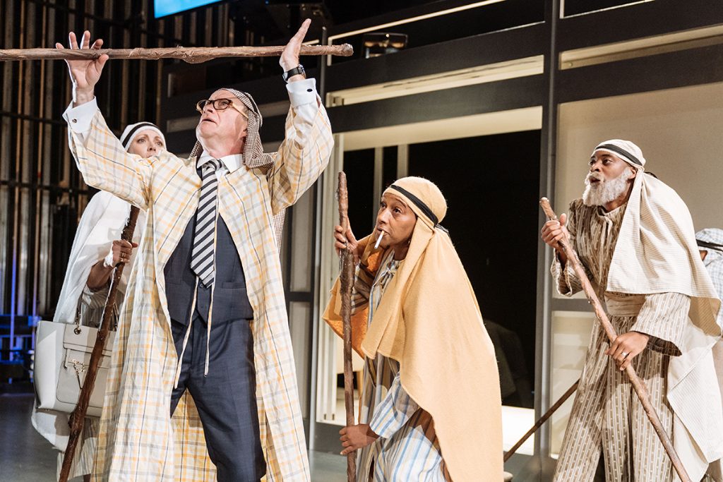 Nevertheless, this piece keeps on keeping on. There’s disco dancing, Susan Sontag and Karl Marx make an appearance, there’s a biblical flashback and the whole thing ends on this dreadfully syrupy original song about how any group of people can be a family as long as there is love. Pass the bucket.